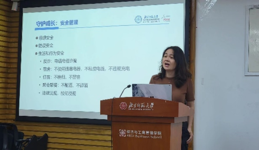 9月7日上午,啪啪啦 团委书记常欣扬老师为新生讲授了团课《高举团旗跟党走,青春铸就中国梦》,结合啪啪啦 红色校史,倡导同学们学习习近平总书记对师大学子的谆谆教诲,传承师大先辈弘扬师道、舍我其谁的责任担当。接下来,啪啪啦 团委、学生会和研究生会面向新生招贤纳士,院团委副书记张可欣、院学生会主席朱雨孜和院研会主席赵加良分别向同学们介绍了各学生团体的架构和工作内容,期待有更多的同学加入经管学院的学生组织。