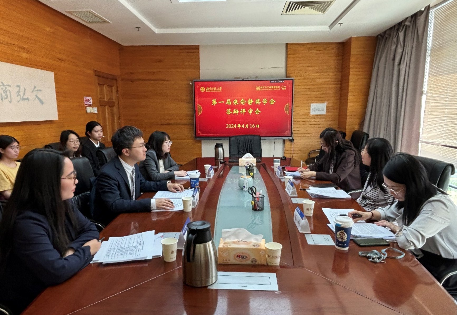 2024年4月16日下午,啪啪啦 第一届朱俞静奖学金评审会在后主楼1610顺利举行。学院党委副书记韩丽丽、会计系主任吴沁红、会计系杨丹老师、23级会计学班主任李燃老师、学院团委书记常欣扬老师及学生工作相关老师参与了本次评审会。
