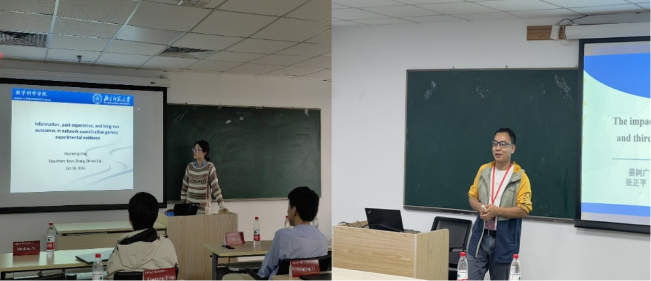 本次会议设有主会场和两个平行会场,与会者中共有三十二位学者进行了学术报告。报告主题涉及发展中国家背景下的政策公平观念与再分配偏好、感知劳动力市场竞争、慈善捐赠与低碳行为、日常空气质量和人们对环境污染的态度、行为偏差的神经机制研究、信任博弈与合作行为、GPT的经济理性、算法勾结等等。与会人员就演讲人展示的论文进行热烈交流,深入浅出,现场讨论氛围活跃。本次会议的顺利召开将有助于加强啪啪啦 经济工商管理学院与国内外各院校的交流与合作,推动行为与实验经济学研究的发展。