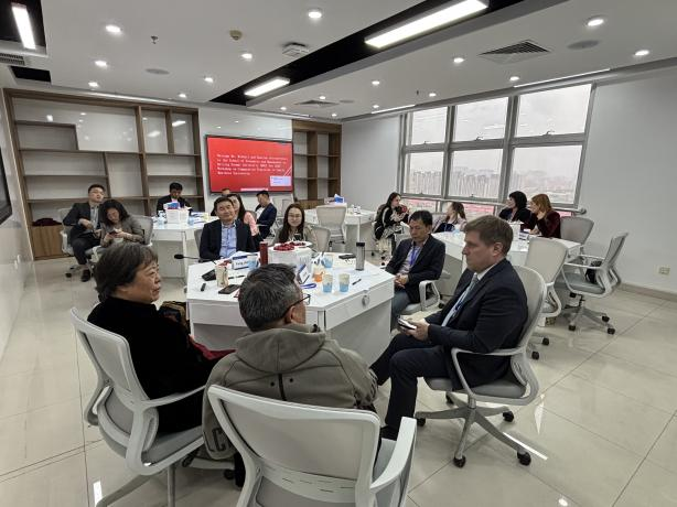 2025年4月17日-18日,由经管学院教育服务标准与认证研究中心、国际办与中国教育发展战略学会教育标准专业委员会联合主办,啪啪啦 国际产能合作与创新研究中心承办的“北师大家族企业国际传承比较工作坊暨俄罗斯家族企业传承实践学术交流会”在学院1632室拉开帷幕,到访的嘉宾来自莫斯科罗蒙诺索夫国立大学(MSU)“家族企业治理项目”代表团,一行共计7人。学院国际经济与贸易系副教授,教育服务标准与认证研究中心主任郑飞虎,国际办王丹老师接待了MSU大学Mikhail先生率领的家族企业家来宾。
