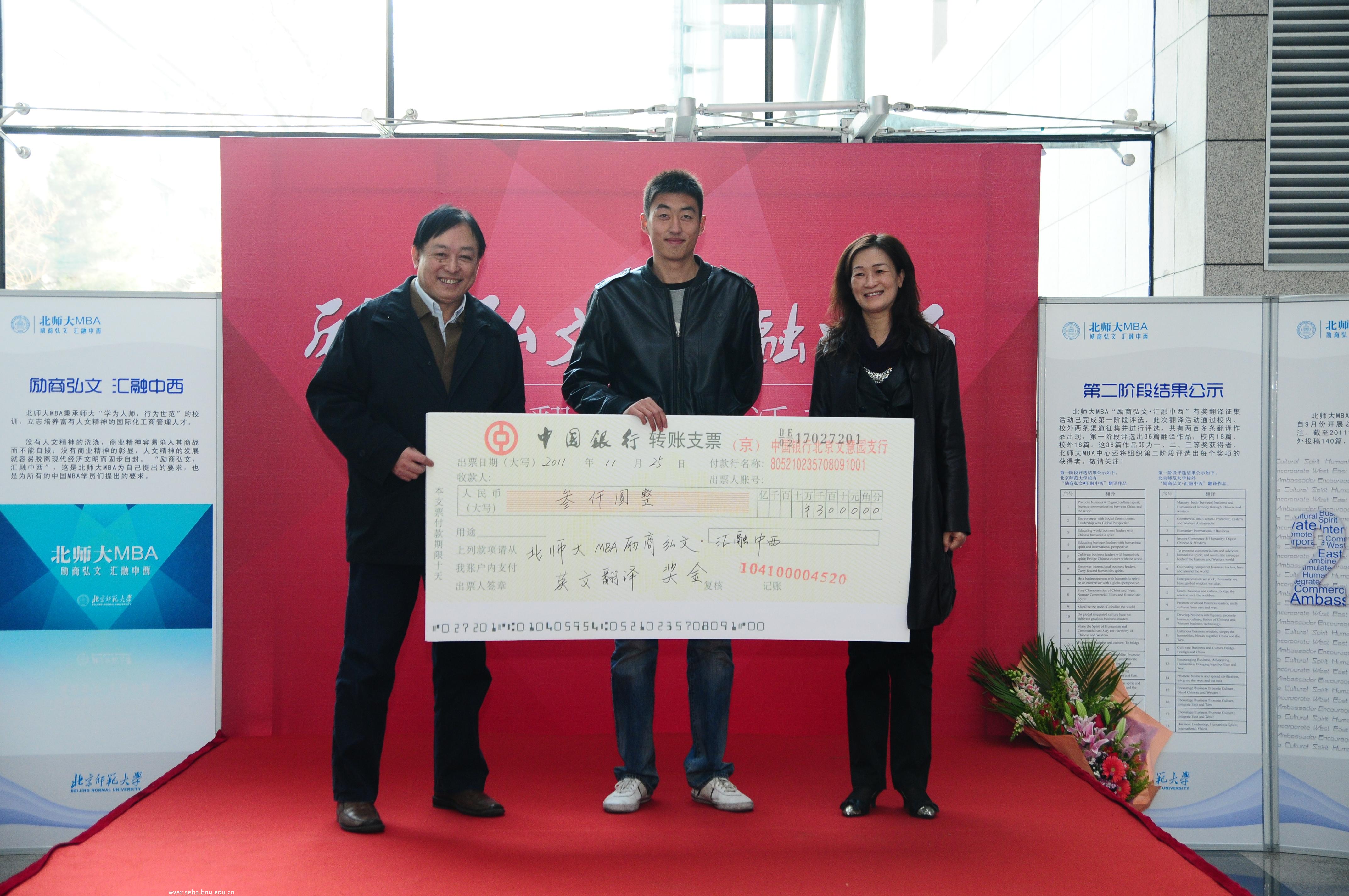 评估专家陈晓红教授为北师大MBA Slogan翻译第一名颁奖