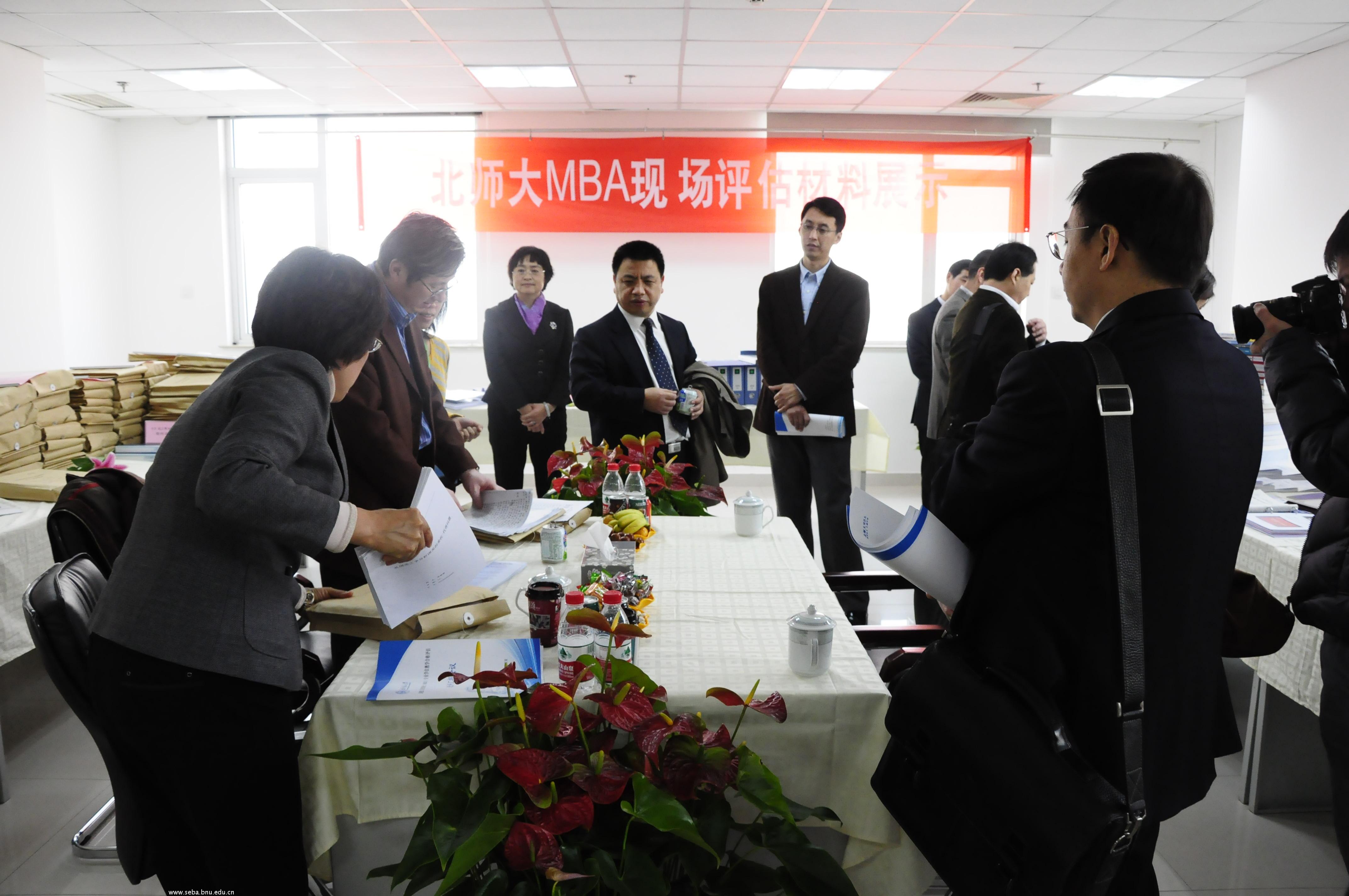 主题展结束后,专家委员一行来到位于教八楼、电子楼阶梯教室以及后主楼的北师大MBA案例室,对教学的硬件设施进行考察。查阅教学文件的环节紧接着进行,三位评估专家从签到、成绩、论文等环节进行了细致的查阅。