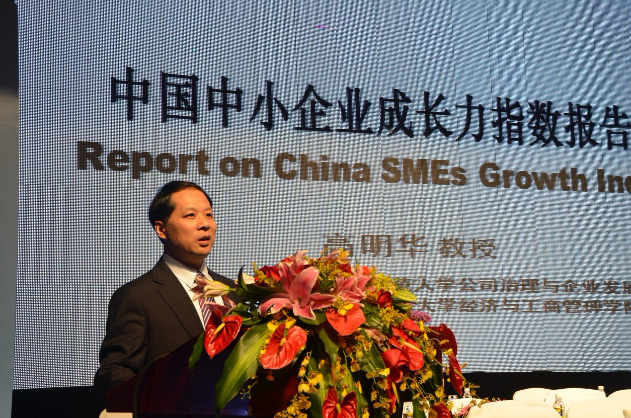 高明华教授在会上作了“中国中小企业成长力指数2011”的主题报告。该指数报告由高明华教授主持完成。报告构建了包括3个一级指标和24个二级指标的指数指标体系,分行业、分地区向全国发放问卷3000多份,回收1945份,其中有效问卷1349份。报告对中国中小企业成长力指数进行了科学计算和全面评价,是国内首份“中国中小企业成长力指数报告”。该报告引起与会专家和企业家的强烈共鸣。根据指数报告,大会推出了“中国中小企业成长力100强”。