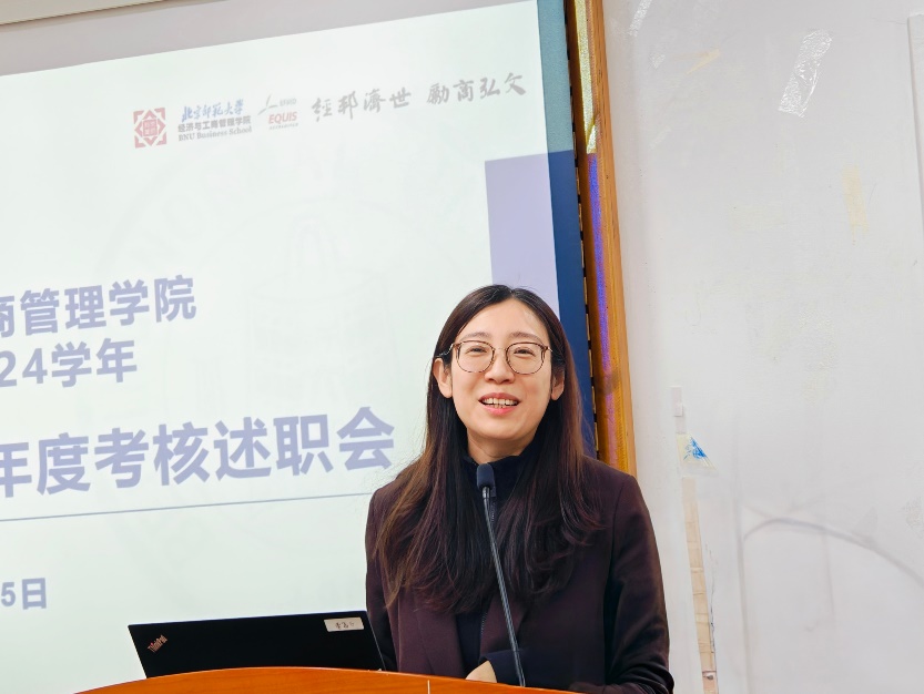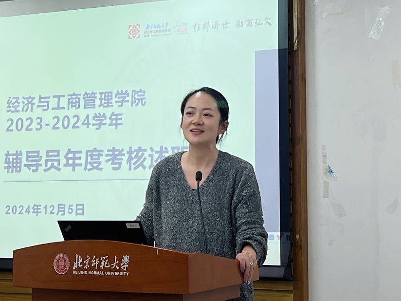接下来,韩丽丽对本学年学院班主任工作概况进行了总结。无论是在班级建设、还是响应学校一站式社区管理号召开展的宿舍活动,都有效地增强班级凝聚力,增进了同学之间的感情。希望各位老师继续努力,在未来进一步挖掘北师大的文化底蕴和教育特色,将其融入班级建设中,建设更具北师大特色、经管特色的班级文化。韩老师指出,一年来,各位班主任老师一直秉持着“学生为本,预防为主”的理念,整体平稳地定期开展工作;尤其在面对突发危机时,班主任们反应迅速、处置得当,及时、恰当地处理了一些突发危机,有效保障了校园和学生的安全稳定。希望各位班主任在未来继续扎实定期开展深度辅导,密切关注学生的思想动态和心理状况,做好工作记录,进一步完善工作流程。同时,要加强与学生的沟通交流,及时了解学生的需求和困难,为学生提供必要的帮助和支持。