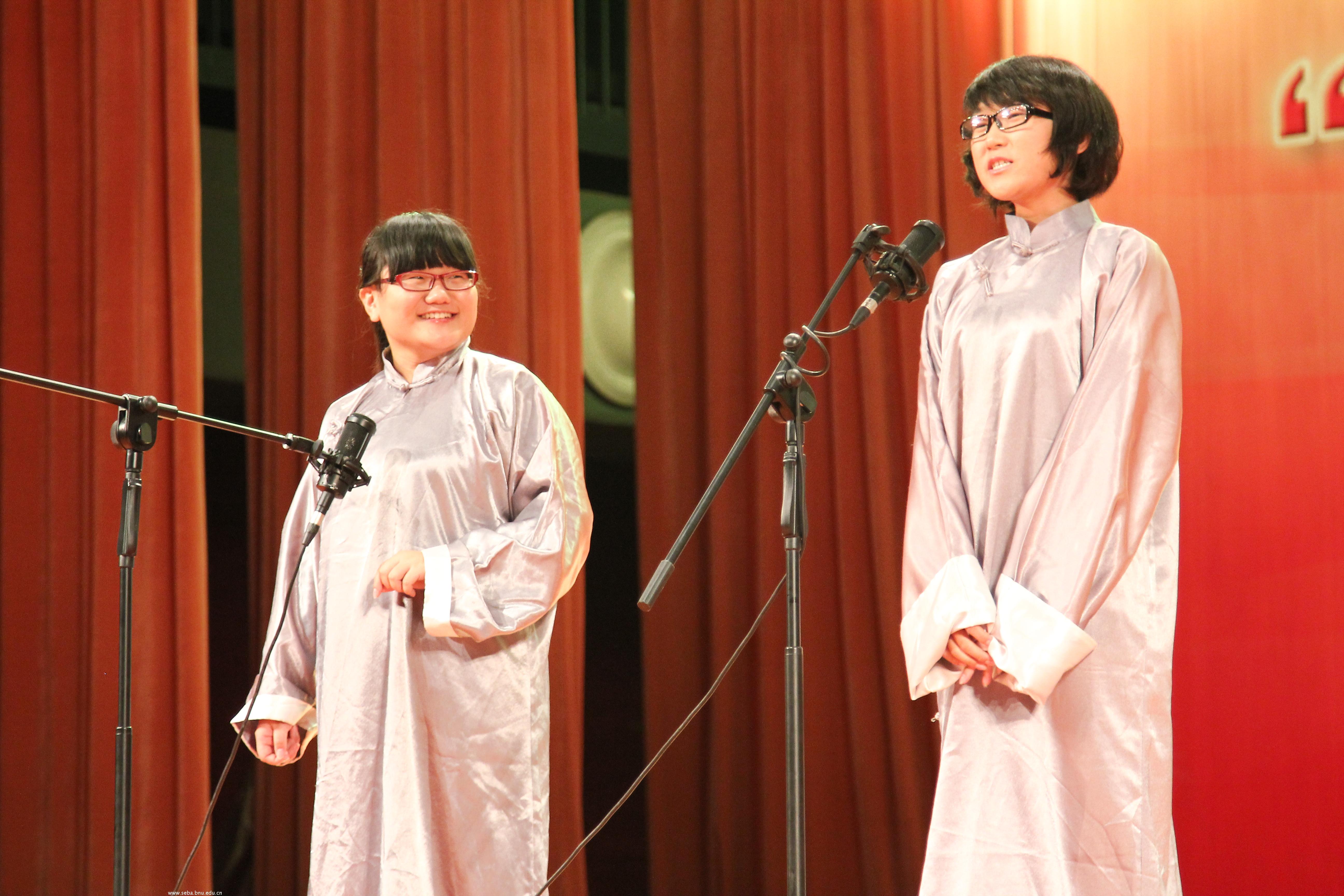 北师大MBA公益基金首个资助项目,安民小学的师生们带来了《草原上升起不落的太阳》和跆拳道表演;2012MBA同学们自编自导自演的情景剧《情缘北师》展现了一系列校园短片,不时引来同学会心的笑声;经管师生合作的诗朗诵《经管心声》表达了全体经管师生对师大的祝福和对未来的信心;本科生演唱的《梅娘曲》、《火把节的欢乐》带来了饱满的激情;乐器演奏《竹楼情歌》细腻精彩;歌舞剧《一个像夏天一个像秋天》充满青春的气息,纯净而令人感动;本科、MBA带来的歌曲串烧不仅为现场观众带来动人的歌声,同时也增进了彼此的交流;留学生的舞蹈《蒙古姑娘》和《江南style》带来异域的风情。节目精彩纷呈,观众席不时传来阵阵掌声和笑声,节目中间还设置了幸运观众抽奖活动,给晚会更添了欢乐的气氛。