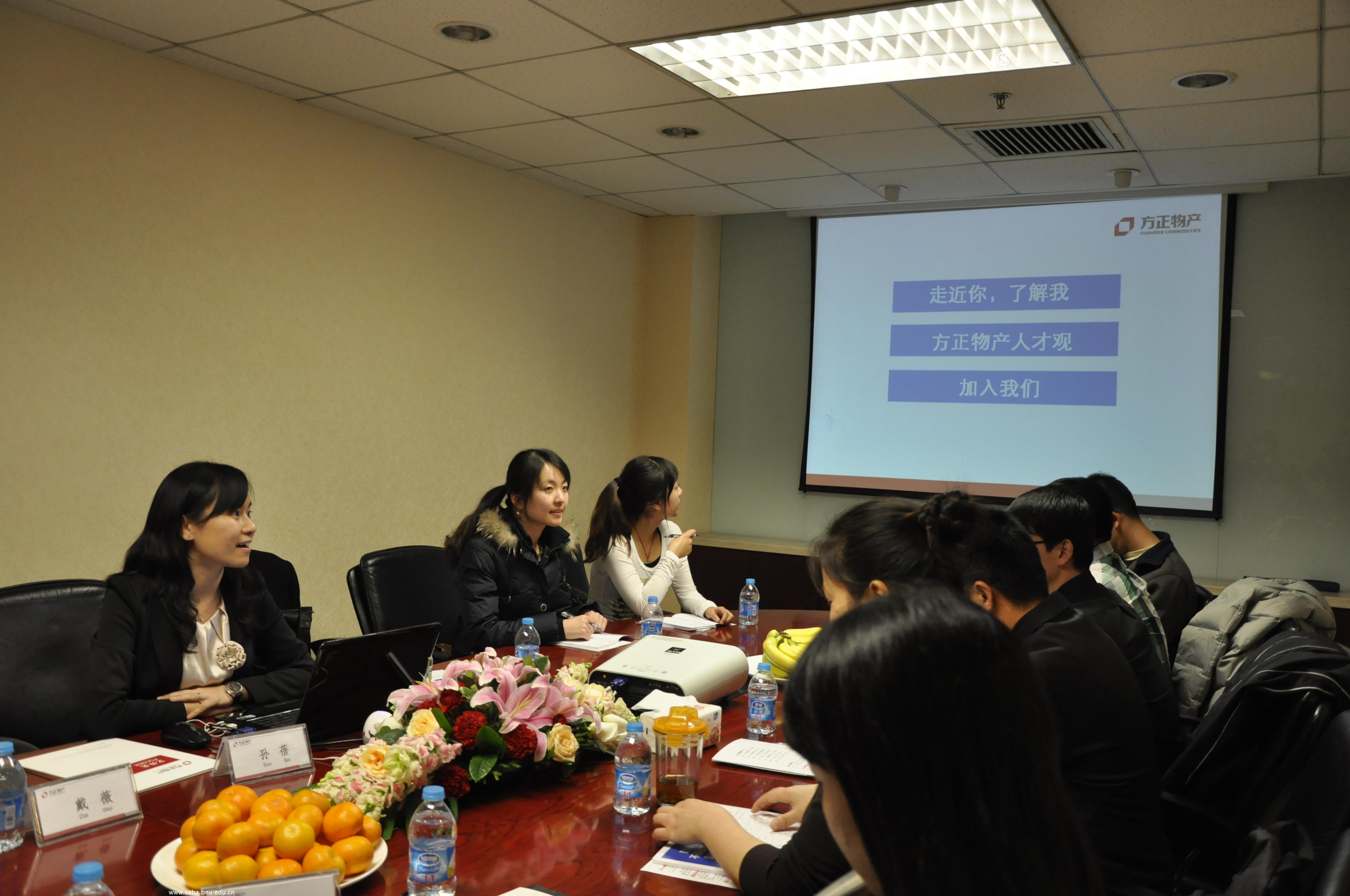 然后,方正物产集团人力资源部副总经理孙蓓女士为在场的北师大经管学院的师生作了题为《世界在变、创新不变》的演讲。孙女士从走近你、走进我;方正人才观;加入我们三个角度详细的介绍了方正集团的产业布局、经营业务、方正素质模式、方正招聘理念以及方正员工的培训体系、激励机制等内容,让在座的同学真正的了解到了方正集团发展的多元化。经管学院的同学又围绕着方正集团的招聘流程、素质要求、国际商务人才的标准等向方正集团负责人请教,方正集团的戴薇助理总裁和孙蓓副总经理给予了精彩的解答。