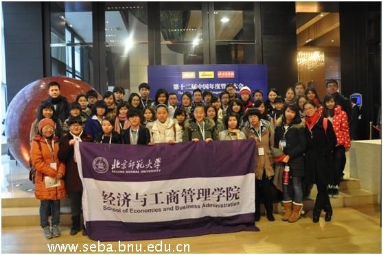 五十多名学生在经管学院MBA教育中心张晓娜老师的带领下参加了“2012(第十二届)中国年度管理大会”。此次管理大会是由《英才》杂志发起和主办,联合新浪网、北京青年报等主流媒体共同在北京柏悦酒店举办。