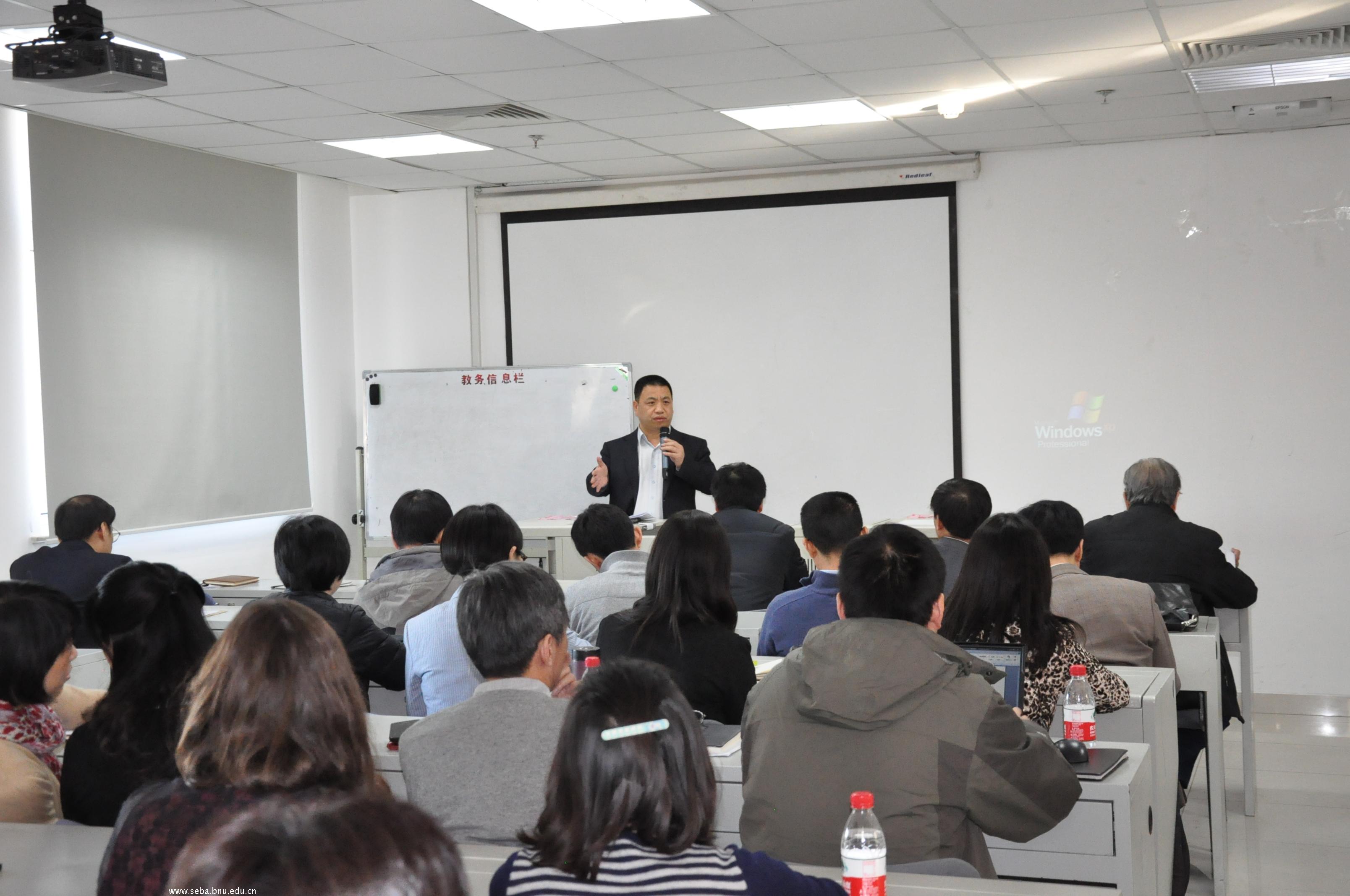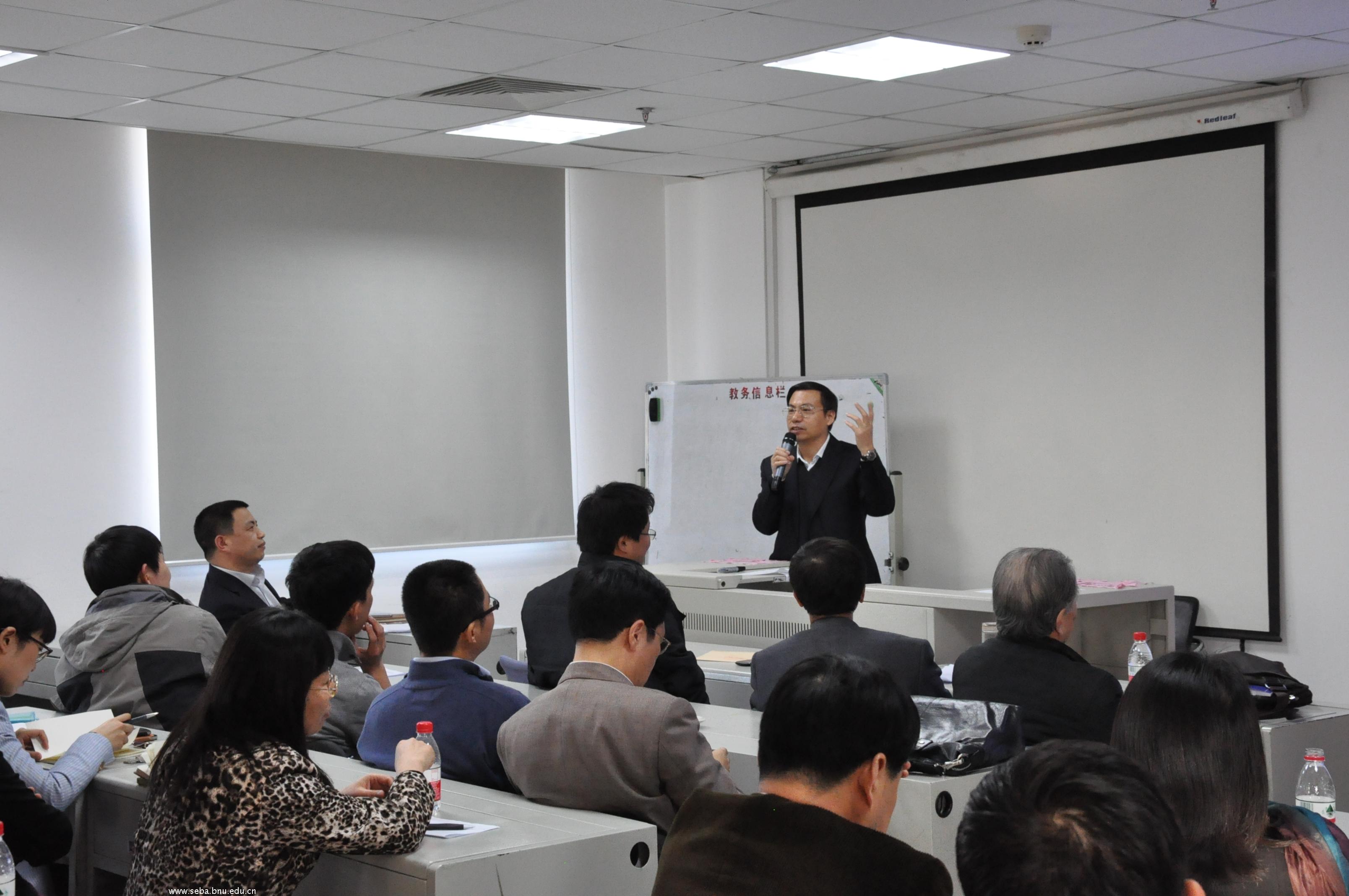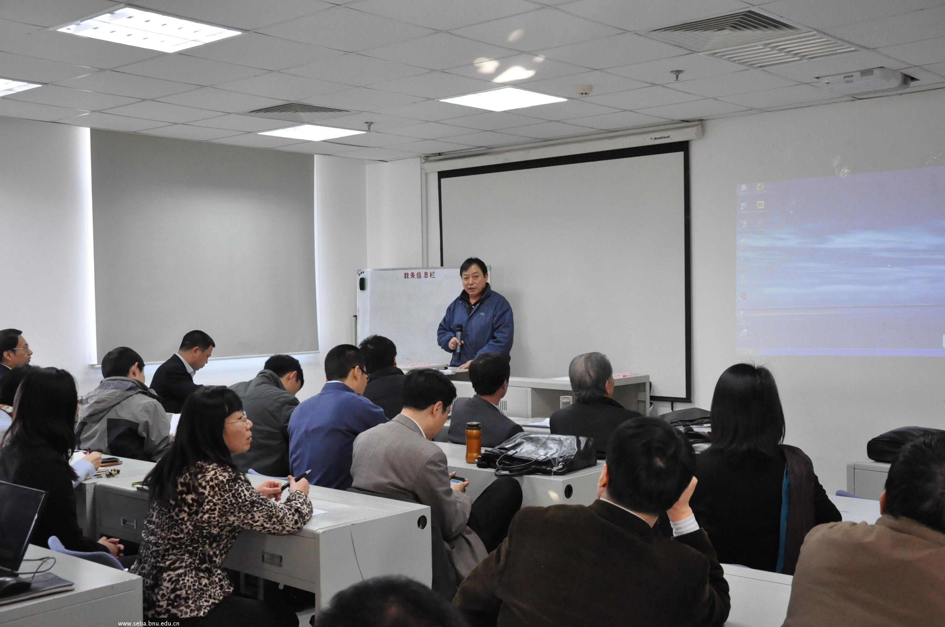 会上,沈越书记首先通报了本学期学校的重要工作,对学校提出的建立世界一流大学的目标进行了阐释,结合该目标对学院的工作提出了一些要求。接着,赖德胜院长汇报了学院近期的工作情况,重点提出了从院办系到系办院的创新改革思路,对各系进一步开展工作进行了部署,对正在进行的年度考核工作提出了具体的要求,对即将进行的年终总结工作做出了具体的安排。最后,赵春明副院长对年会等行政工作和期末考试等教学工作进行了布置。