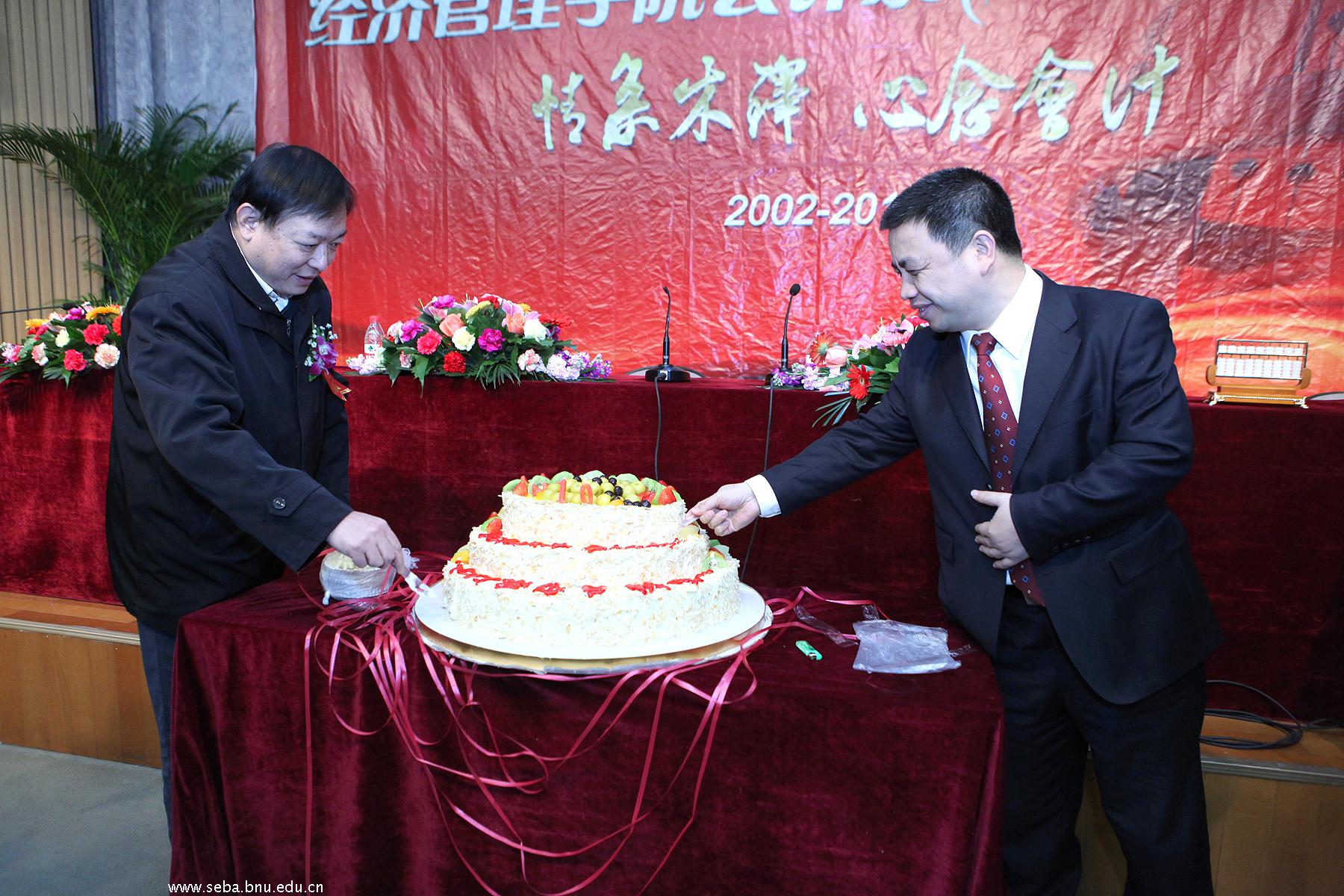 赖德胜院长在讲话中肯定了会计系在经济管理学院中的作用,指出会计系集合了全国最好的学生,经过几年的培养,就业率和就业质量非常好,会计系经过十年的建设,从无到有,从小到大,成果丰硕。赖院长同时希望会计系能够进一步创新、开拓,为经济管理学院成为一流学院,北师大成为世界一流大学作出更好的贡献。会计系校友代表陈运森、教师代表李欲晓、学生代表李蓁、各届学生代表以及会计系全体老师以各自独特的方式纷纷为会计系10周岁生日献上祝福。最后,系庆蛋糕被缓缓推入会场,10周岁的生日蜡烛被点燃,大家品尝着蛋糕,分享着喜悦,会场氛围其乐融融,整场系庆活动在温馨的生日歌中结束。
