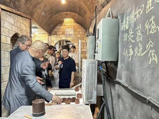 研学实践第三站是文化教育。在宜兴紫砂葛盛陶庄,学生兴致勃勃参与了一站式非遗体验,从紫砂陶泥的拍打、粘连到成型,体会到中华匠人的独守与精心。此外,借由观赏紫砂文化的国际传播,品味紫砂茶艺的清幽意境,留学生深深体悟到中华文化的博大精深。