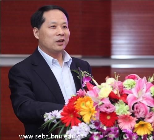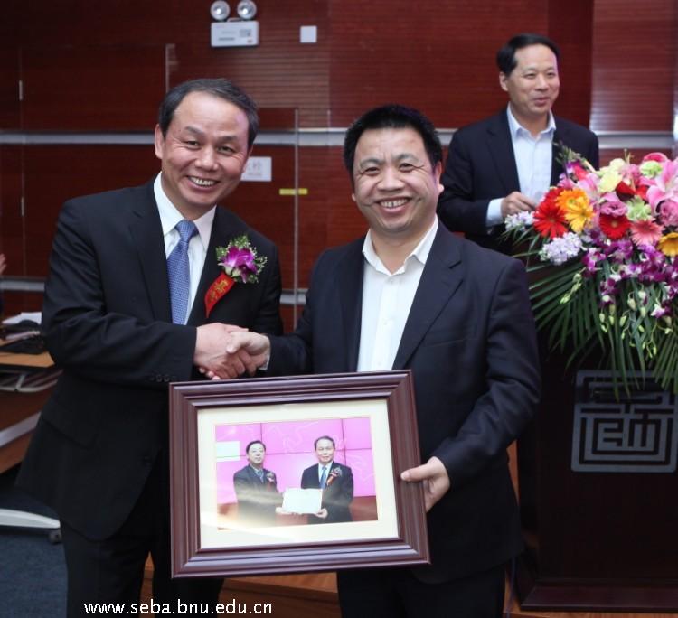 图4:北师大经管学院院长赖德胜教授主持聘任仪式并赠与吴焰先生纪念品