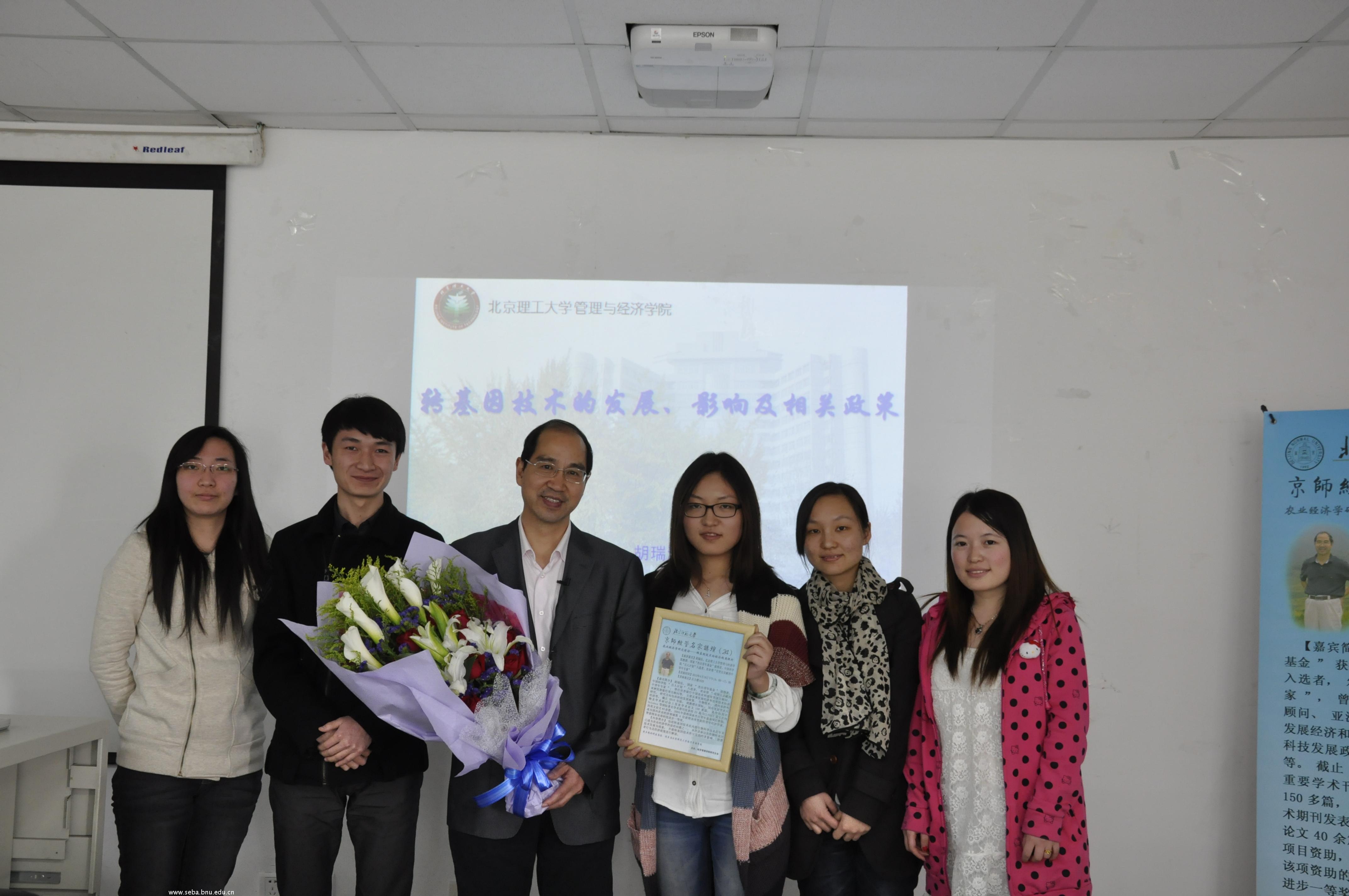 经济管理学院研究生会主办的“京师经管名家讲坛”第24期成功举办。北京理工大学管理与经济学院教授,国家“杰出青年基金”获得者,中国科学院“百人计划”入选者,农业部“有突出贡献的中青年专家”,著名农业经济学家胡瑞法教授在后主楼1620教室做了一场精彩的报告。本次讲座题为“农业经济学研究前沿—转基因技术的经济视角探析”,即通过以农作物转基因技术发展为线索,对转基因技术所引发的经济影响、消费者行为及经济政策进行了解读。
