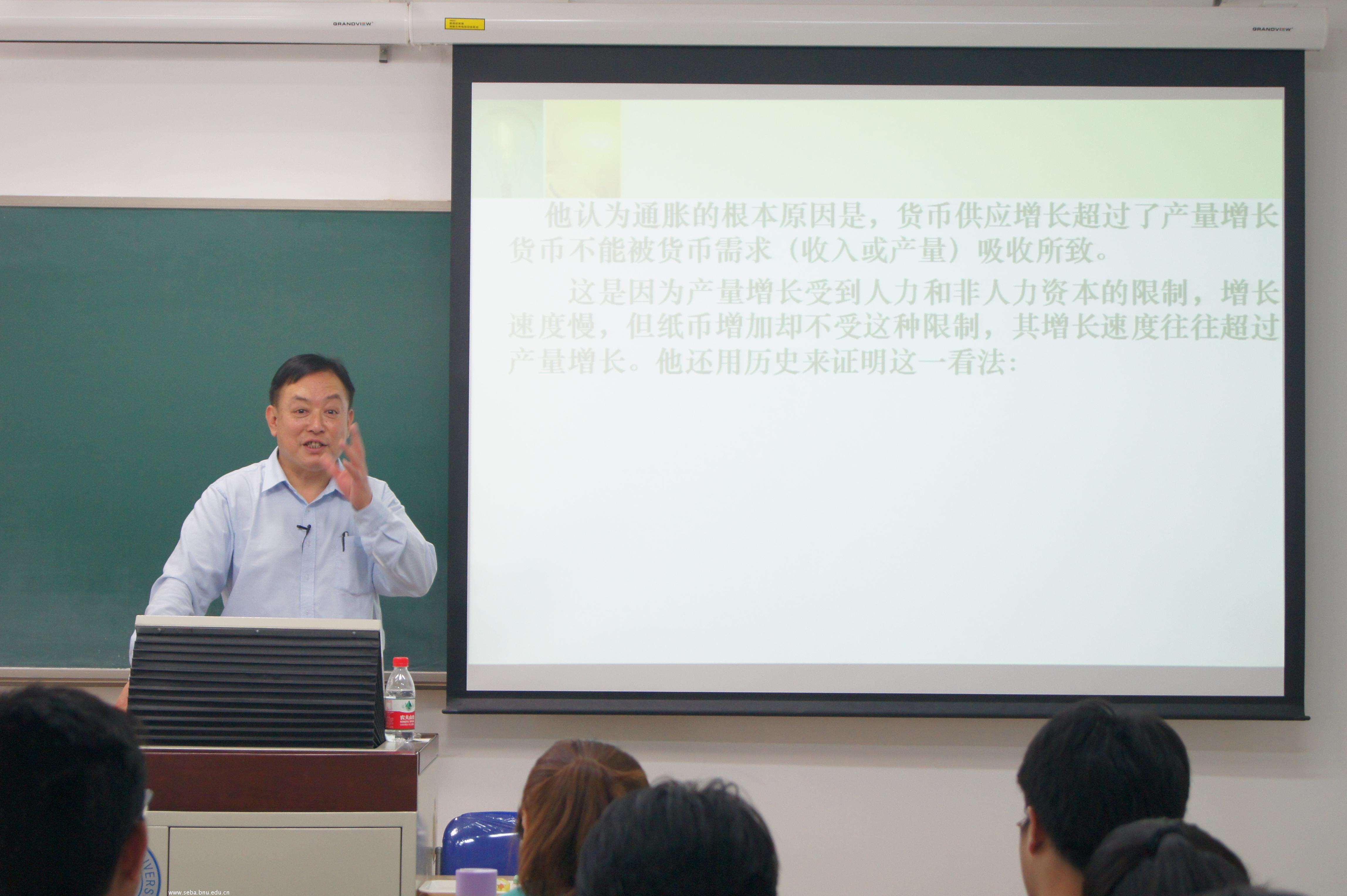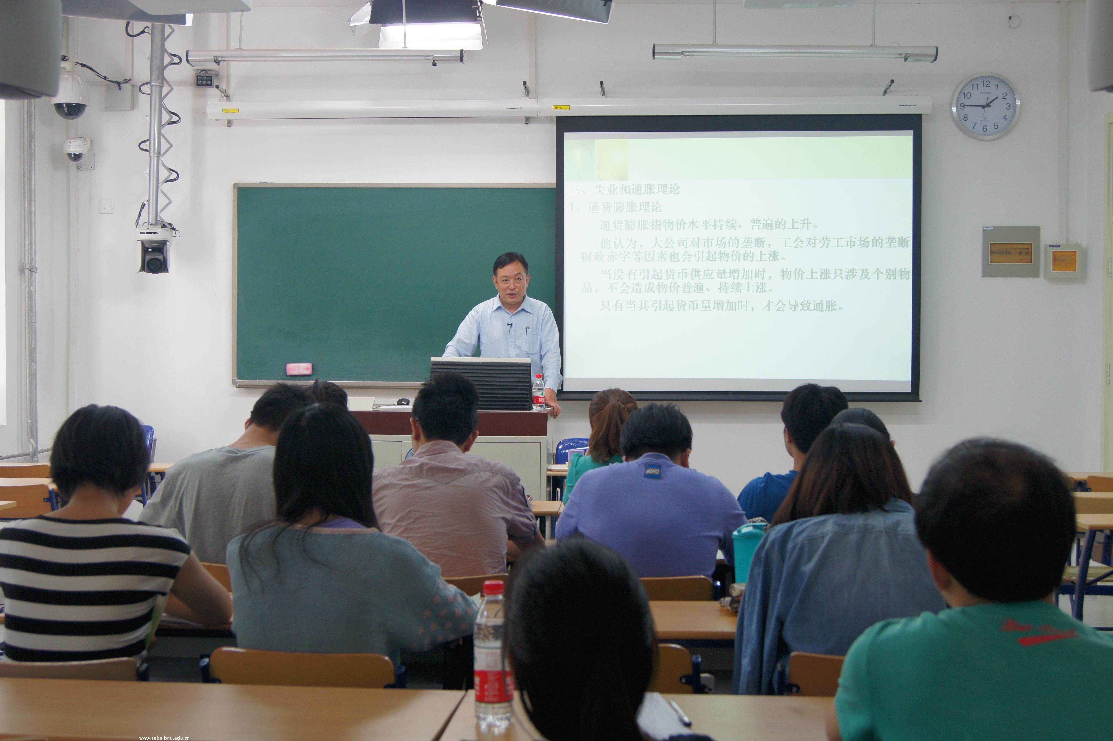 组织相关学科教师特别是青年教师,观摩了沈越老师《当代西方经济学流派》课程教学。本次课程的主要内容:货币供给的传递机制和名义收入、费里德曼失业和通货膨胀理论等。沈越老师讲解逻辑清晰,重点突出;适当时机给学生增加课本以外的知识,调动了学生的积极性;风趣幽默,富有激情。 课后,参加观摩的教师感触颇多,意识到自身教学中的不足,并在以后的教学中要不断加强自己的专业学习,积极拓展相关知识。