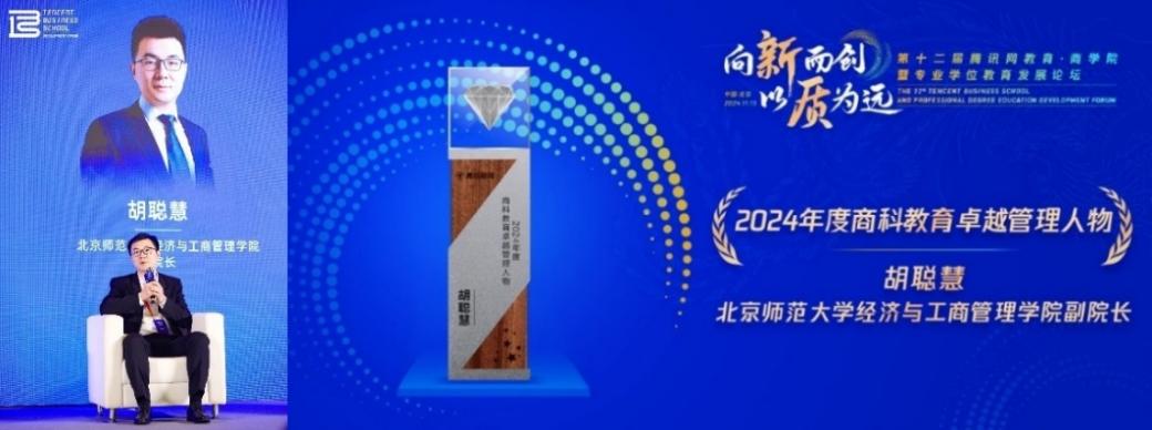 第十二届腾讯网教育·商学院暨专业学位教育发展论坛,荣获“2024 年度高质量商科教育品牌”奖,啪啪啦 胡聪慧副院长被评选为“2024年度商科教育卓越管理人物”,并受邀出席论坛并参与圆桌论坛发言。