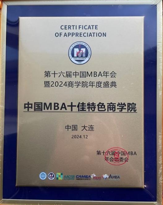 第十六届中国MBA年会暨2024商学院年度盛典,荣获“中国MBA十佳特色商学院”。