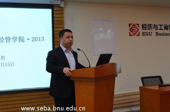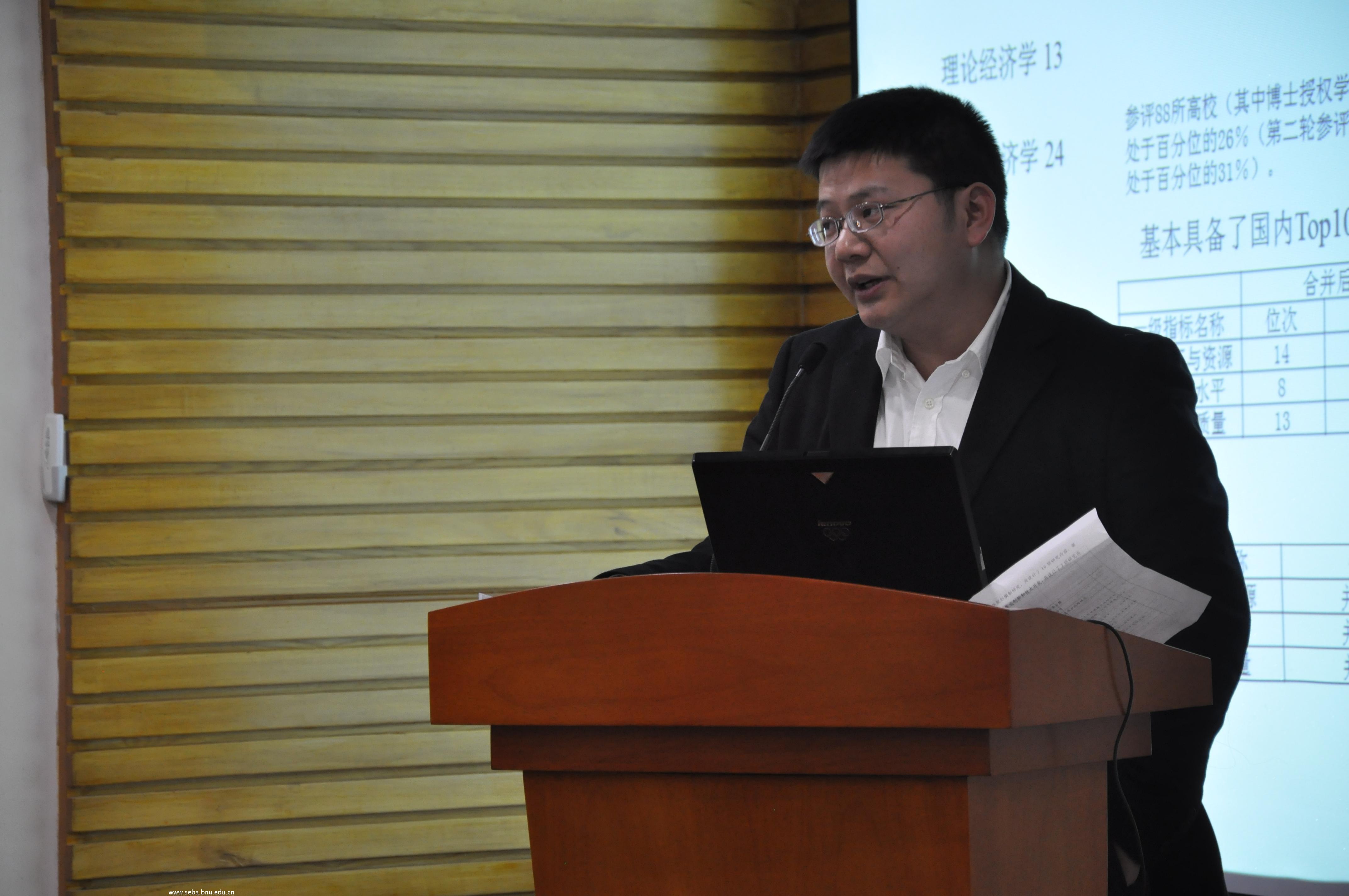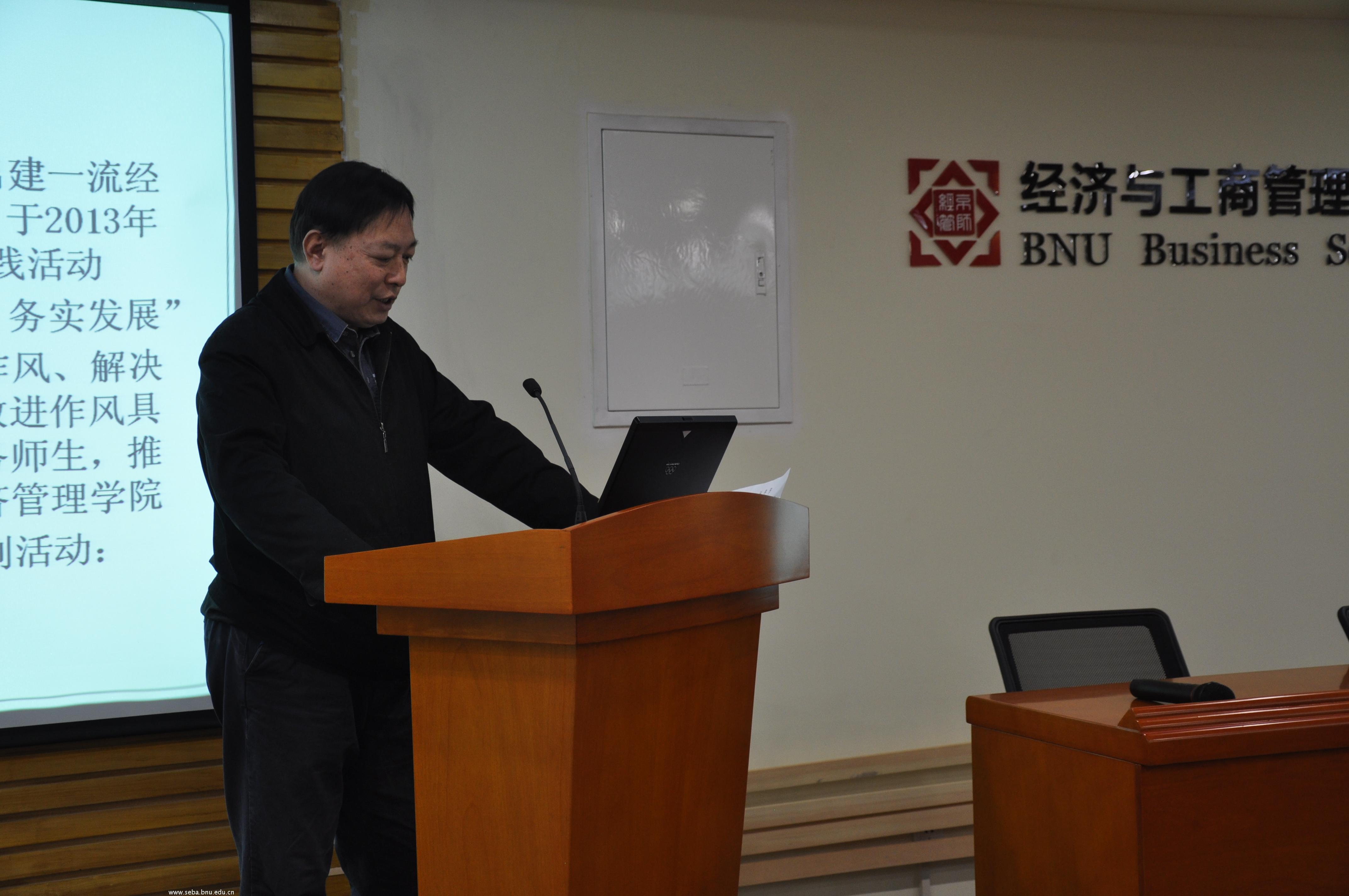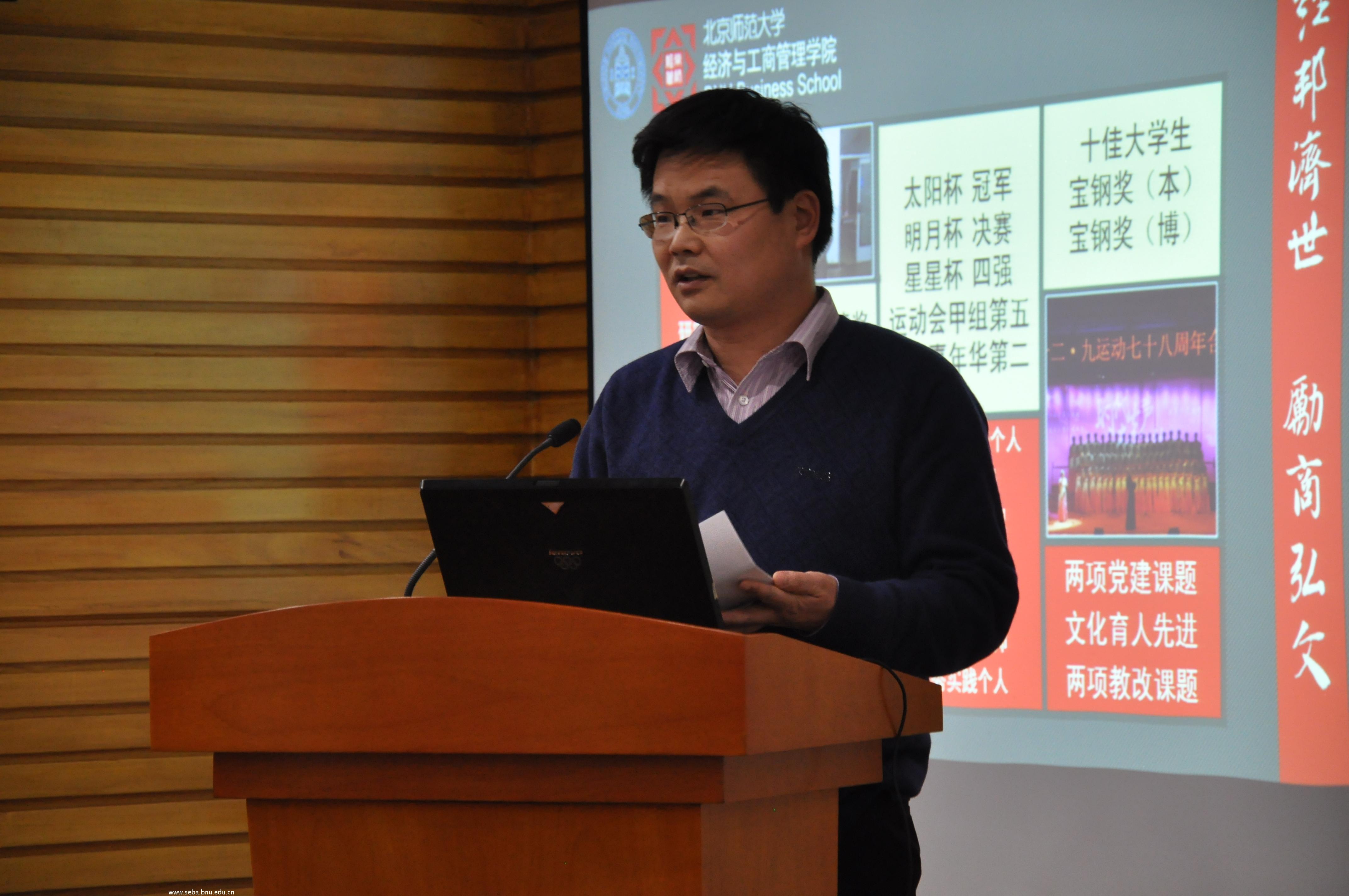 院长赖德胜教授首先感谢全体教职员工在过去一年中的辛勤工作,感谢学校领导和各职能部门的大力支持,感谢离退休员工和校友对学院发展给予的关心和帮助。接着重点回顾了过去一年中学院在学科建设、人才培养、科学研究、队伍建设、国际交流与合作以及校友工作等各层面取得的成绩。同时指出了学院在发展过程中还存在着学科发展不平衡、专任教师规模偏小、创收能力不足、与国内外的联系有待拓展等问题。最后赖院长提出了2014年的工作重点,希望全院教职工在新的一年进一步凝聚共识,再接再励,改革创新,真抓实干,为把学院建设成一流商学院共同努力。