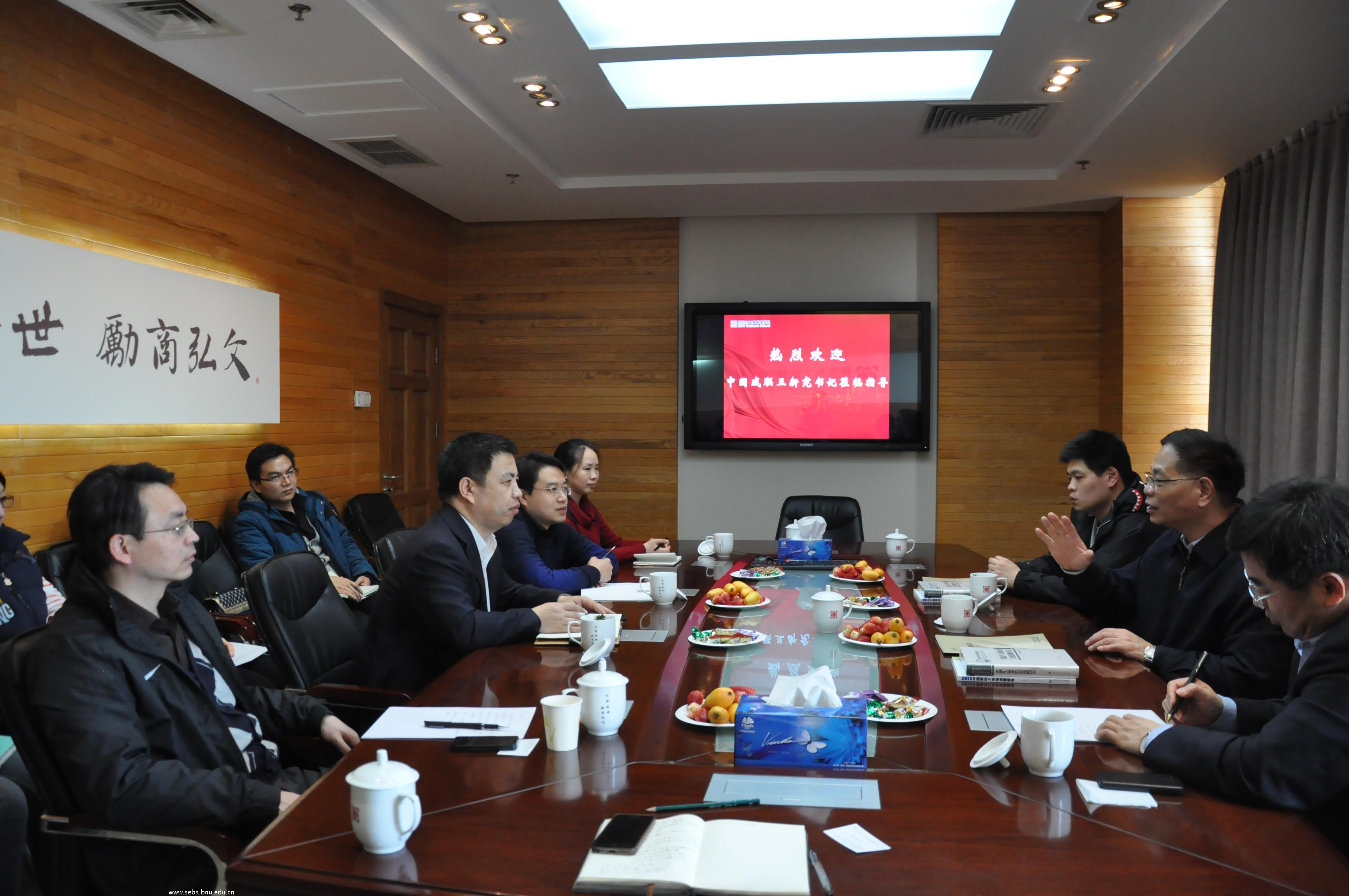 陈光巨副校长对王委员莅临北师大考察指导表示热烈欢迎。赖德胜院长汇报了经管学院和劳动力市场研究中心在残疾人事业研究方面所做的努力,以及未来的工作设想。