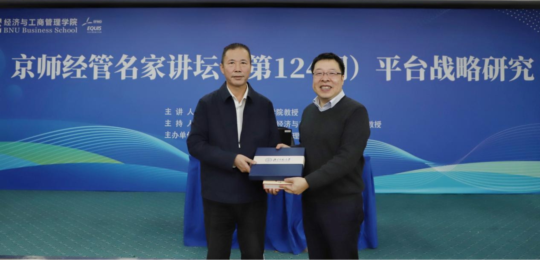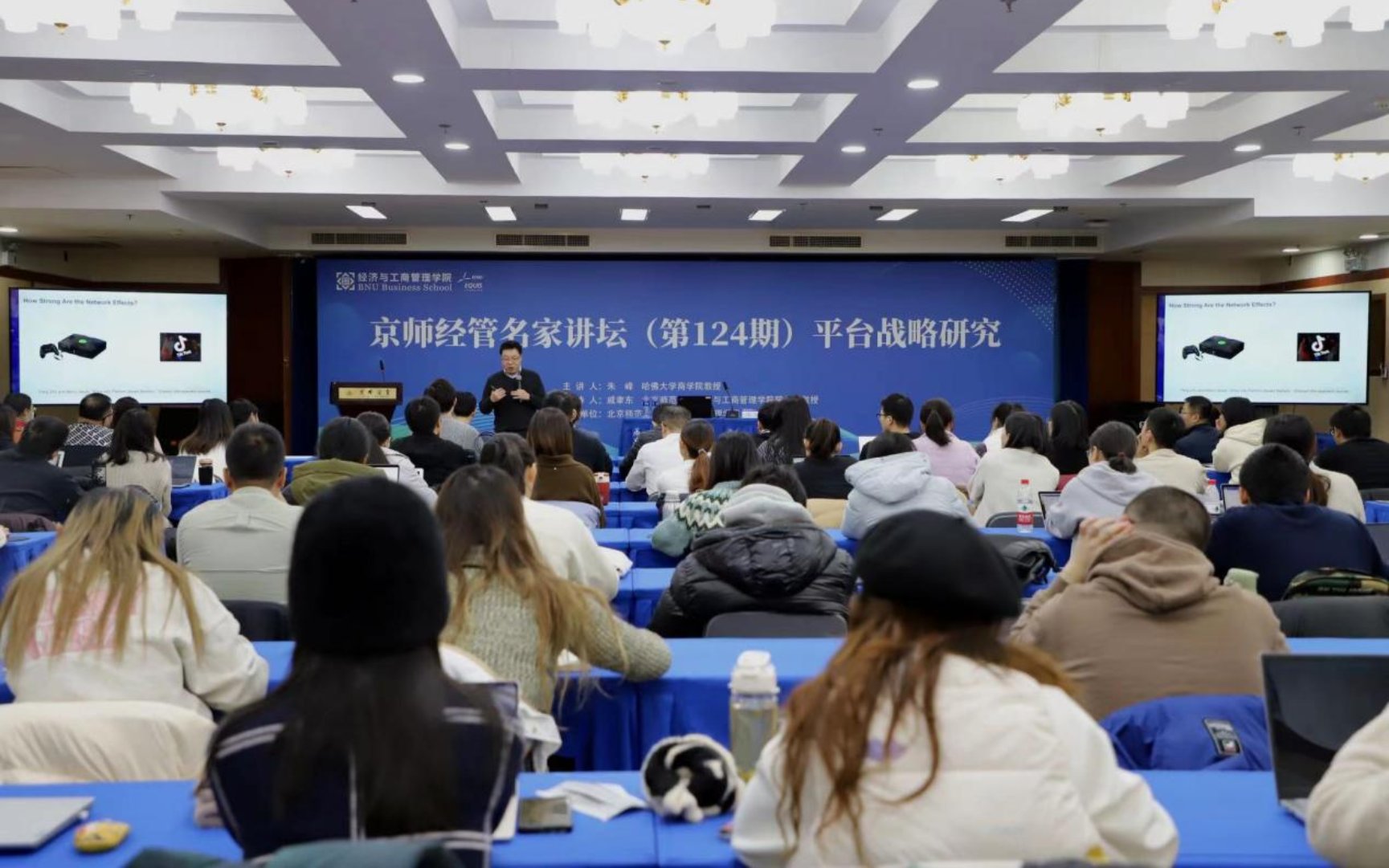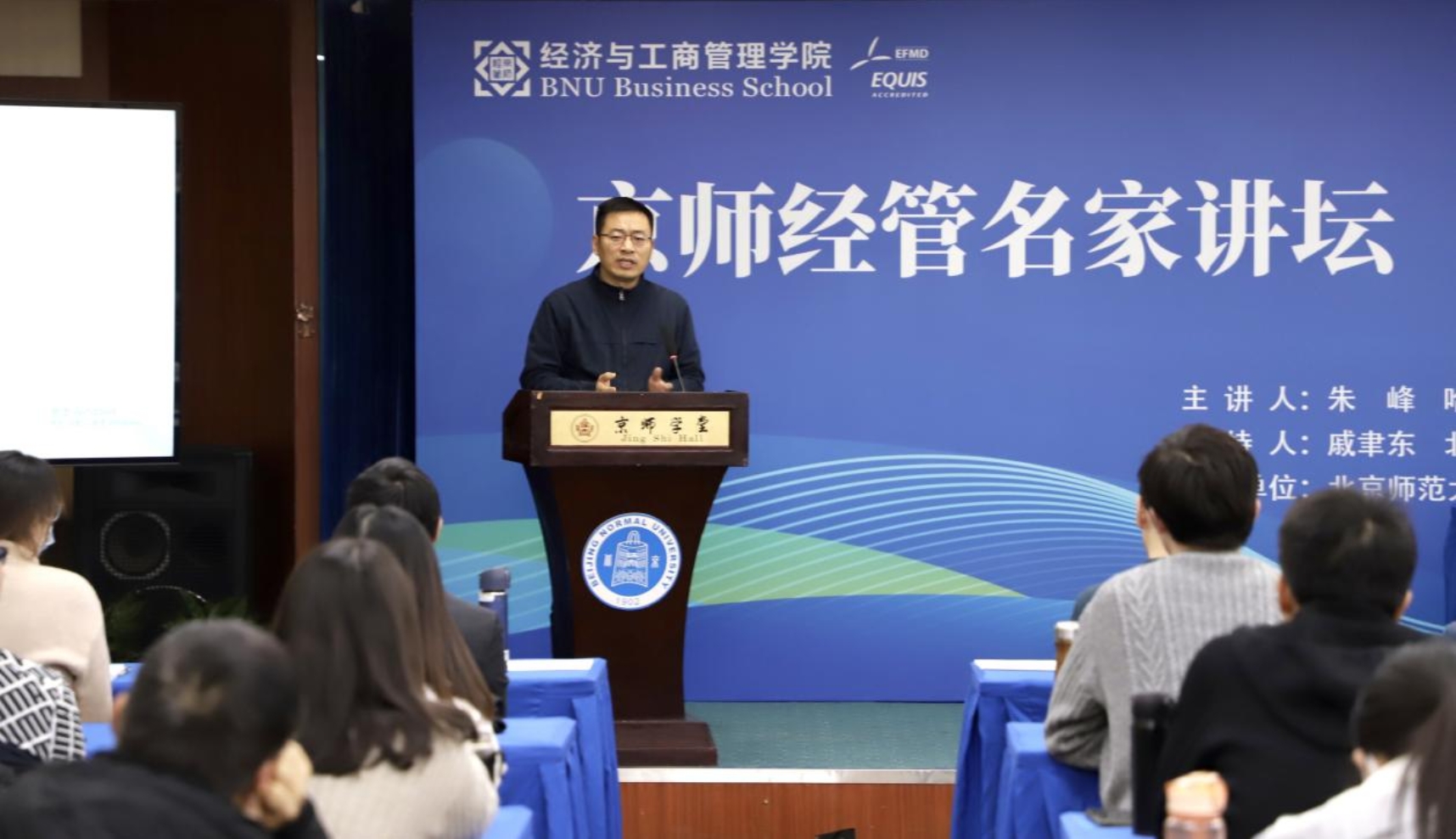 2023年12月21日下午,啪啪啦 “京师经管·名家讲坛”(第124期)在京师大厦第六会议室举行。本次讲座由哈佛大学商学院朱峰教授主讲。学院院长戚聿东、数字经济与管理系主任焦豪、MBA教育中心主任周江华、经济系教授何浩然以及校内外师生约一百余人参加讲座,讲座由戚聿东院长主持。