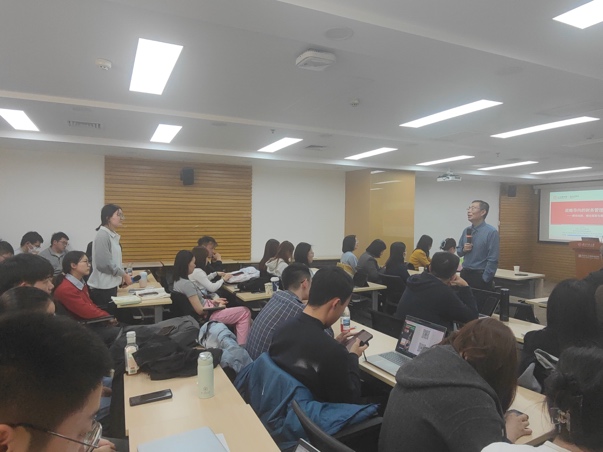 在讲座尾声,王教授进一步拓展研究视角,提出将战略导向研究从企业层面扩展至企业集团和国家战略响应层面。他展示了团队近期有关央企数字化战略协同对高质量发展影响的研究成果,并指出企业积极响应国家战略,有助于提升资源配置效率和技术创新能力,是推动经济高质量发展的关键力量。王教授的研究引发了在场师生的浓厚兴趣,大家积极围绕战略导向的财务管理话题与他展开深入探讨互动交流,现场讨论氛围热烈。