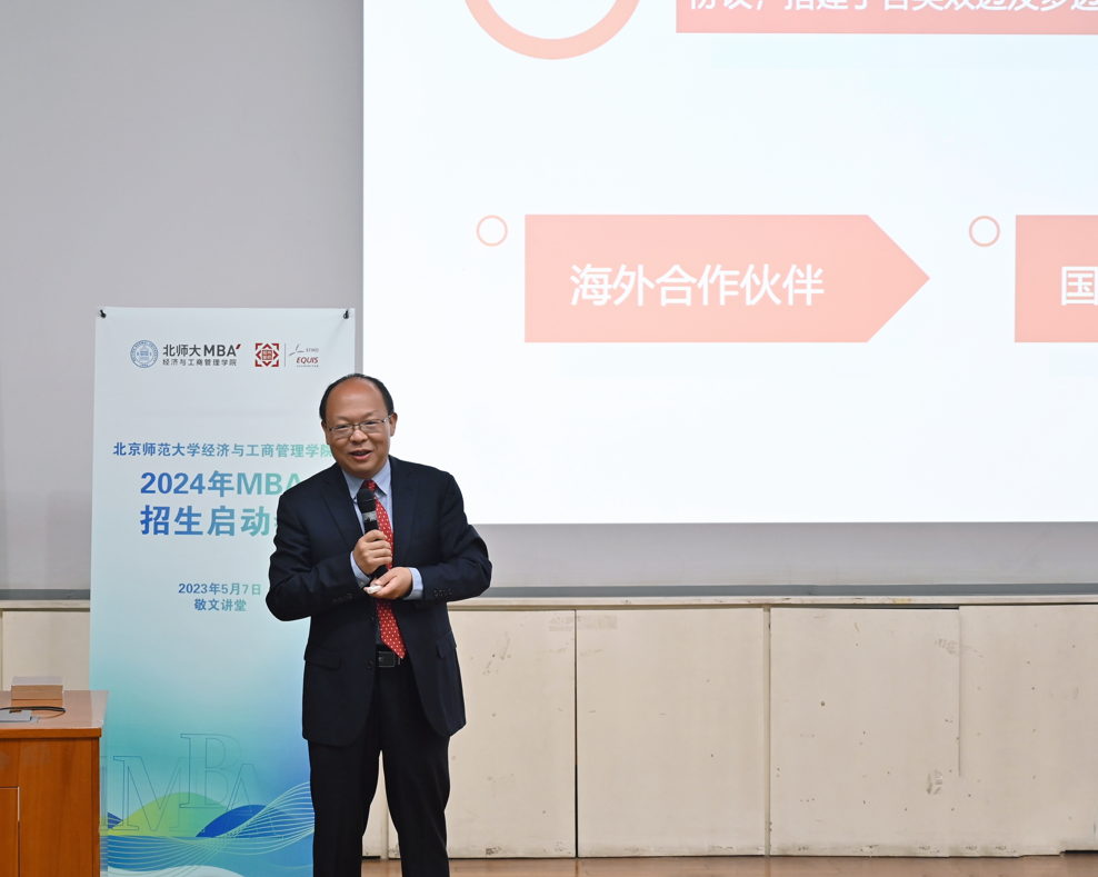 启动会由2022级MBA在校生郭雅馨主持,内容包括:“走进北师大、走进经管学院”、“多维的北师大经管MBA项目”、“明师”公开课“从公司治理到ESG:企业可持续发展的风向标”、2024年MBA申请、抽奖互动五个部分。