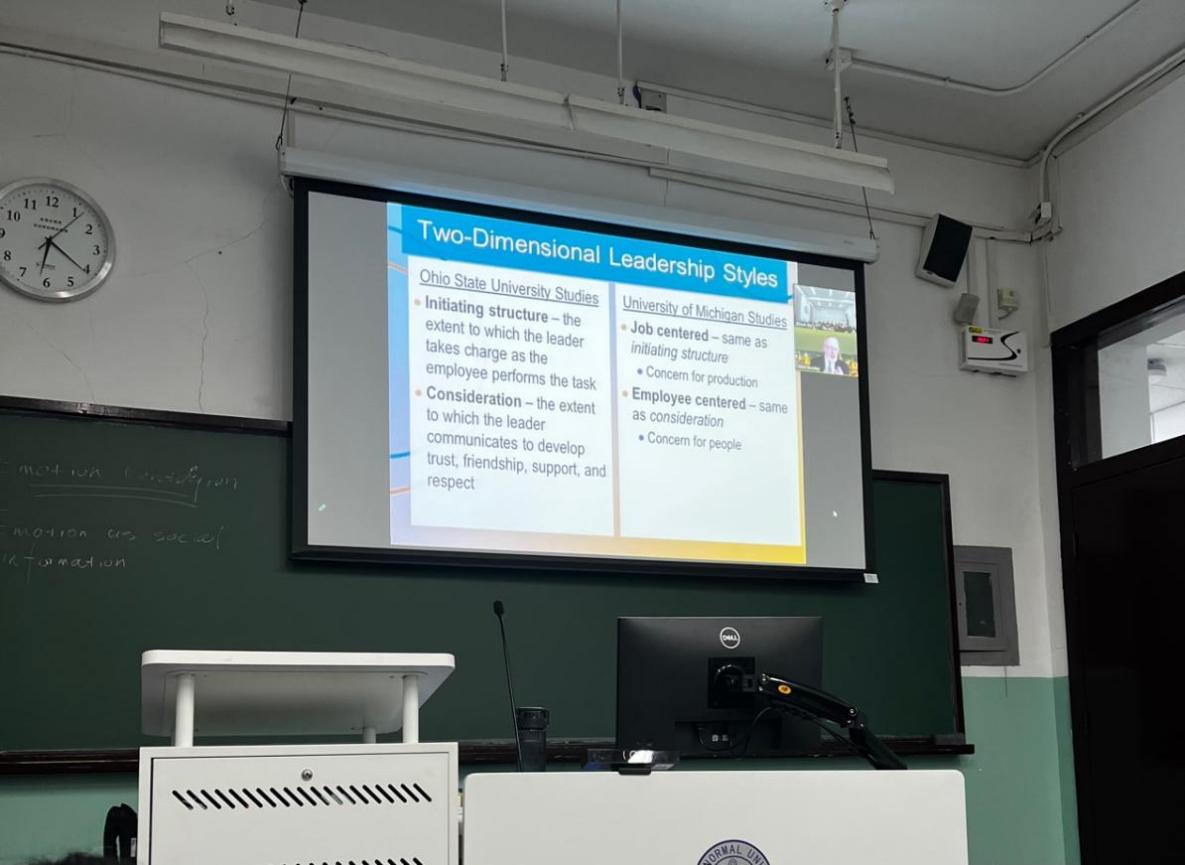 罗利教授的教学围绕“Effective Leadership in Uncertain Times For International Business & Globalization.(国际商务和全球化不确定时期的有效领导)”展开。他首先对“不确定性”进行了概念阐释,帮助学生理解其对决策环境的深远影响。然后,他结合现实案例详细讲授了在不确定情境下如何进行有效领导。他强调领导者必须具备多方面的能力,并从“工作-员工”两个维度出发带领学生梳理了不同领导力概念的异同及其回应的时代问题。最后,他分享了自己对于在当下环境下应该如进行更为有效领导的辨证思考。在教学过程中,他多次鼓励学生扎根现实,立足自己的文化情境来辩证地理解、吸收课本概念。通过此次课堂,学生们对领导力产生了更加深刻的理解,并能从更加全球化的视野来看待课本内容,表达了强烈的继续探索、学习的热情。