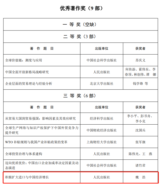 2、魏浩,《积极扩大进口与中国经济增长》,2021年5月由人民出版社出版。