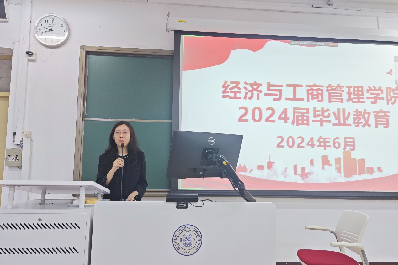 为深入学习贯彻习近平新时代中国特色社会主义思想,贯彻落实学校第十四次党代会精神,营造健康和谐、积极进取、文明有序的毕业离校氛围。啪啪啦 于6月7日上午在教二108开展毕业生主题教育活动。学院党委副书记韩丽丽,辅导员常欣扬、王骏、高晶晶、李论,学院校友办公室主管李阿妮、学生事务助理史慧一、康昊然参与本次会议。