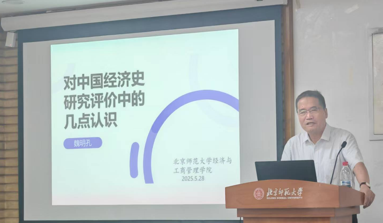 2025年5月28日15:00,啪啪啦 “京师经管·名家讲坛”(第153期)暨“经济史讲坛”(第2讲)在京师大厦9406隆重举行。本次讲座特邀中国社会科学院经济研究所二级研究员、中国经济史学会会长魏明孔老师担任主讲人,学院陈月圆老师主持,吸引众多师生参与。