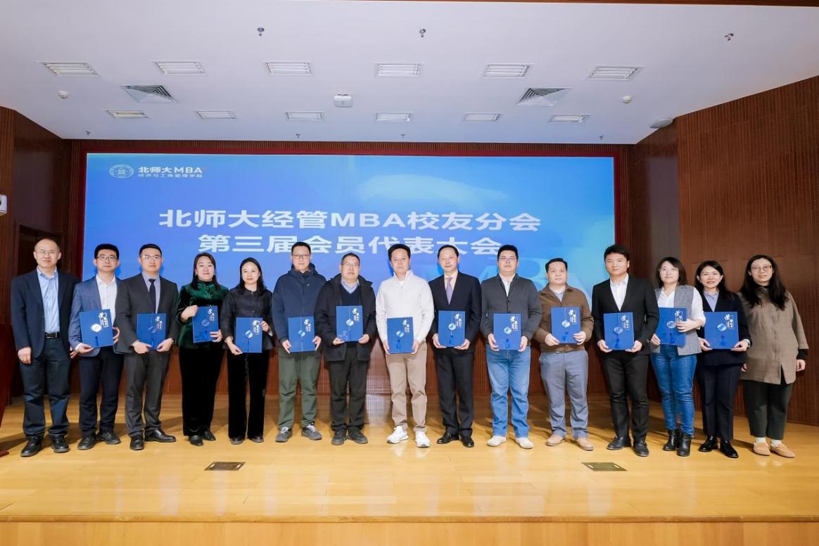 活动在啪啪啦 副院长胡聪慧的主持下拉开帷幕。学院党委书记孙志军在致辞中强调,校友会需立足“服务校友、回馈母校、共谋发展”的宗旨,构建资源共享与互利共赢的平台。大会审议通过《北师大经管学院MBA校友分会管理办法(2025年修订)》,选举产生第三届理事会成员,周江华教授当选新任理事长。他在就职演讲中提出校友会三大核心使命:促进跨行业资源链接、传承教育精神、推动产学协同创新,并表示将通过聚合效应实现校友事业与母校发展的同频共振。