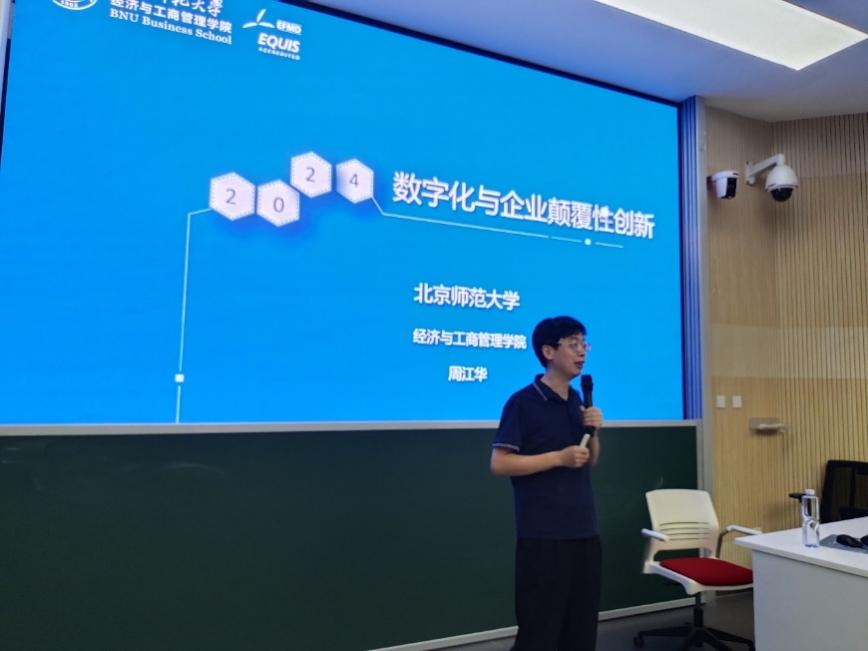 周教授首先抛出领先企业如何被新兴企业颠覆这一问题,紧接着从颠覆性创新的角度对其进行解答。某些大型企业将资源投向可保证最佳回报的创新,而非颠覆性创新,在市场和技术发生突变时,可能丧失行业领先地位。随后,分析了数字技术的颠覆性,数字技术具有开放性、可供性、自生长性、收敛性等特征,成为颠覆性创新的驱动因素。周教授还为大家分享了数字化与企业颠覆性创新相关的研究成果,从理论模型构建和实证数据分析两个维度论述数字化转型如何影响企业创新,并深入解读了联想创投、腾讯投资、小米集团等企业实践案例。最后,指出颠覆性创新离不开场景驱动,应结合数字化情境下不断丰富和演进的应用场景进行系统思考。在互动环节中,周教授与同学们广泛交流,详细解答同学们提出的问题。