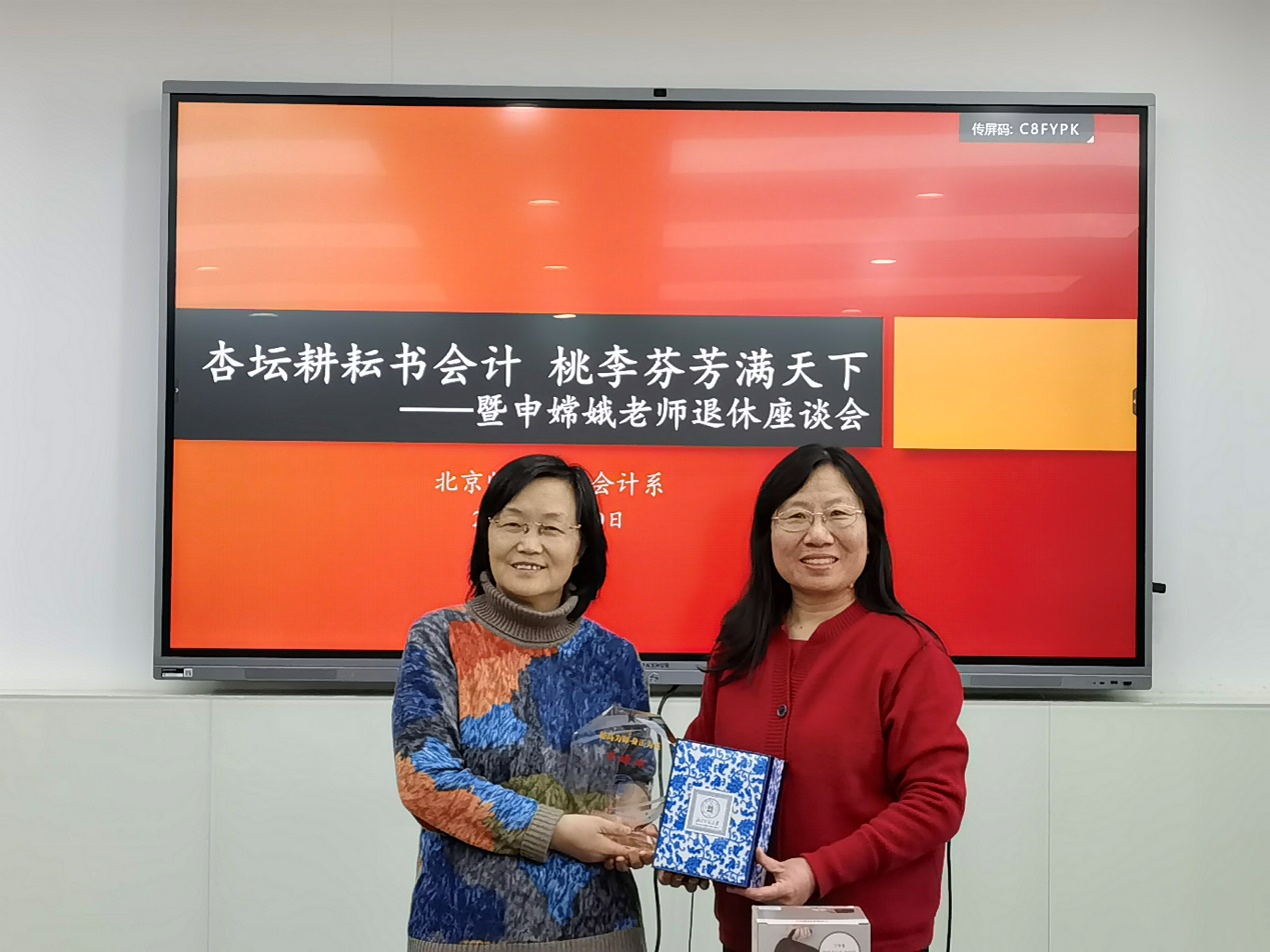 2023年12月29日,会计系在后主楼1722室举办主题为《卓越追求数十载 杏坛耕耘育桃李》暨申嫦娥老师退休座谈会,会计系全体教师参加了此次活动。