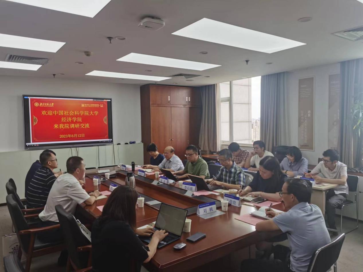 2023年6月11日下午,中国社会科学院大学经济学院执行院长张涛、党委书记钟德寿、副院长李石强、院长助理王微微等一行11人到啪啪啦 开展调研交流。学院院长戚聿东、党委书记孙志军、经济系主任许敏波、院团委书记常欣扬、院办公室主任王玮参加了调研座谈会。