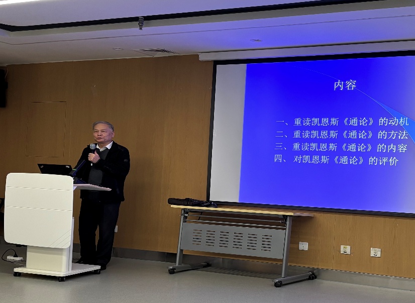 李翀围绕《21世纪重读凯恩斯(通论)》的写作做主旨演讲,从重读凯恩斯《通论》的动机、方法、内容以及对凯恩斯《通论》的评价四个部分展开论述。他指出,重读凯恩斯《通论》这一现代宏观经济学的奠基之作,探讨其能否经得起逻辑和实践的经验,有助于更好理解凯恩斯经济学在经济思想史中的地位,有助于建构中国经济学自主知识体系。关于重读《通论》的方法,他秉持“价值中性”理念,把实证经济问题和规范经济问题分开,主要讨论其中的实证问题,不带主观倾向态度,进行逻辑检验和事实检验。他以凯恩斯《通论》中最重要的“有效需求理论”为例,分享了重读《通论》后获得的新见解。最后,李翀强调凯恩斯《通论》在经济思想史上具有重大影响,尽管晦涩难懂、存在争议,但其作品充满创新与智慧。