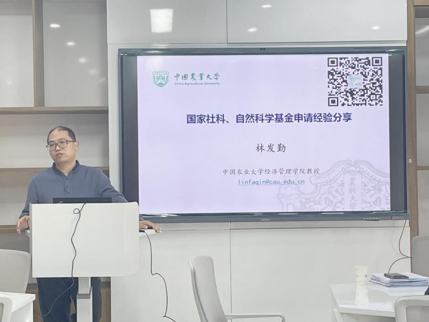 学院积极贯彻落实加强有组织科研,不断优化科研机制,以需求为导向,推动科研高水平发展。为提升学院教师科研水平,增强国家级课题申报竞争力,2024年12月18日下午,学院举办了国家级课题申报宣讲与交流会。此次宣讲会特邀中国农业大学经济管理学院林发勤教授莅临指导,旨在为学院老师提供深入了解国家级课题申报流程、要点及技巧的宝贵机会,吸引了学院众多教师踊跃参与,现场气氛热烈。
