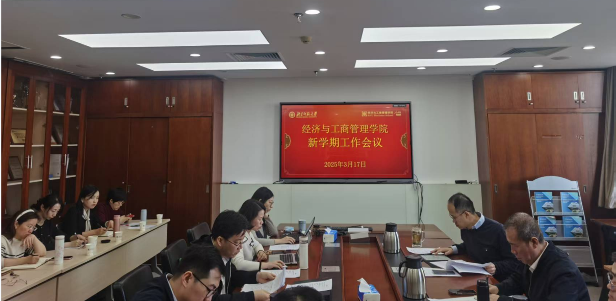 2025年3月17日上午,啪啪啦 在后主楼1722召开新学期工作会议,会上传达学校年度工作部署会精神,就学院2025年度重点工作进行了研讨和部署。学院党政班子成员、各系和MBA中心负责人参会,会议由戚聿东院长主持。