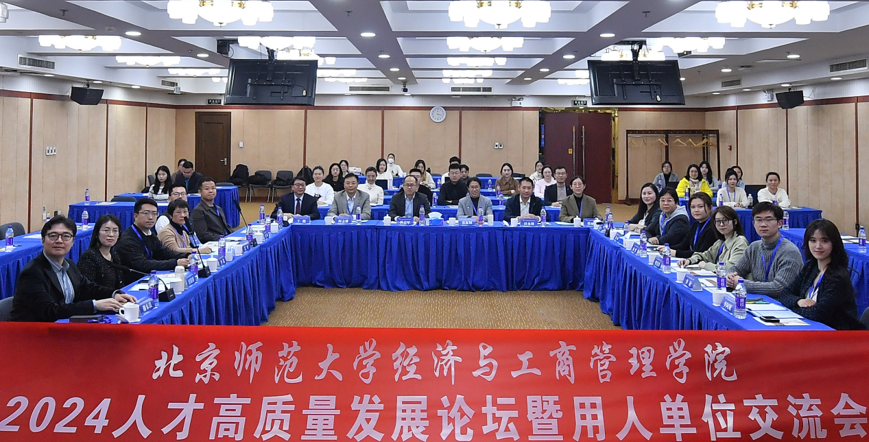 2024年12月1日下午,啪啪啦 2024人才高质量发展论坛暨用人单位交流会在京师大厦第六会议室成功举行。北师大职业发展与就业指导中心主任张新颖、北师大经管学院党委书记孙志军出席会议。来自中国人事科学研究院、中国农业银行总行、商务部国际贸易经济合作研究院电子商务研究所、北京市东城区商务局、中信建投证券股份有限公司、格林大华期货有限公司、立信会计师事务所、中国出口信用保险公司、电子工业出版社、智联测评研究院、度小满、快手等用人单位代表受邀参加此次会议。活动由学院党委副书记韩丽丽主持。