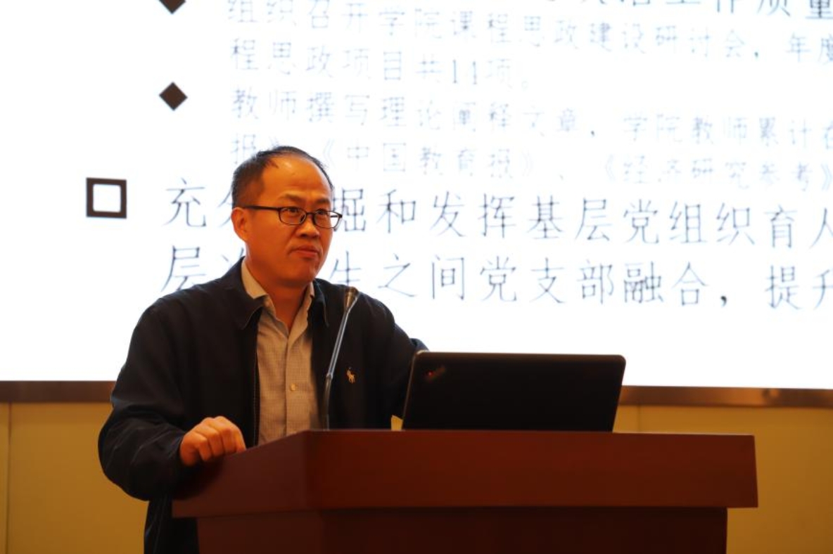 江婕副书记汇报了教师党建思政、纪检工作、工会工作和金融科技专业建设等方面工作。坚持师德师风教育常态化、制度化管理,强化教师支部建设,开展有组织的课程思政。师资队伍建设持续发力,助力教师人才工作稳步推进。工会积极开展各项活动,优化工会活动室空间利用、扩展功能,丰富教职工业余生活。金融科技专业培养目标更加清晰,举办第三届金融科技与数字经济发展高层论坛,聘任第二批金融科技校外导师,专业建设取得新成效。
