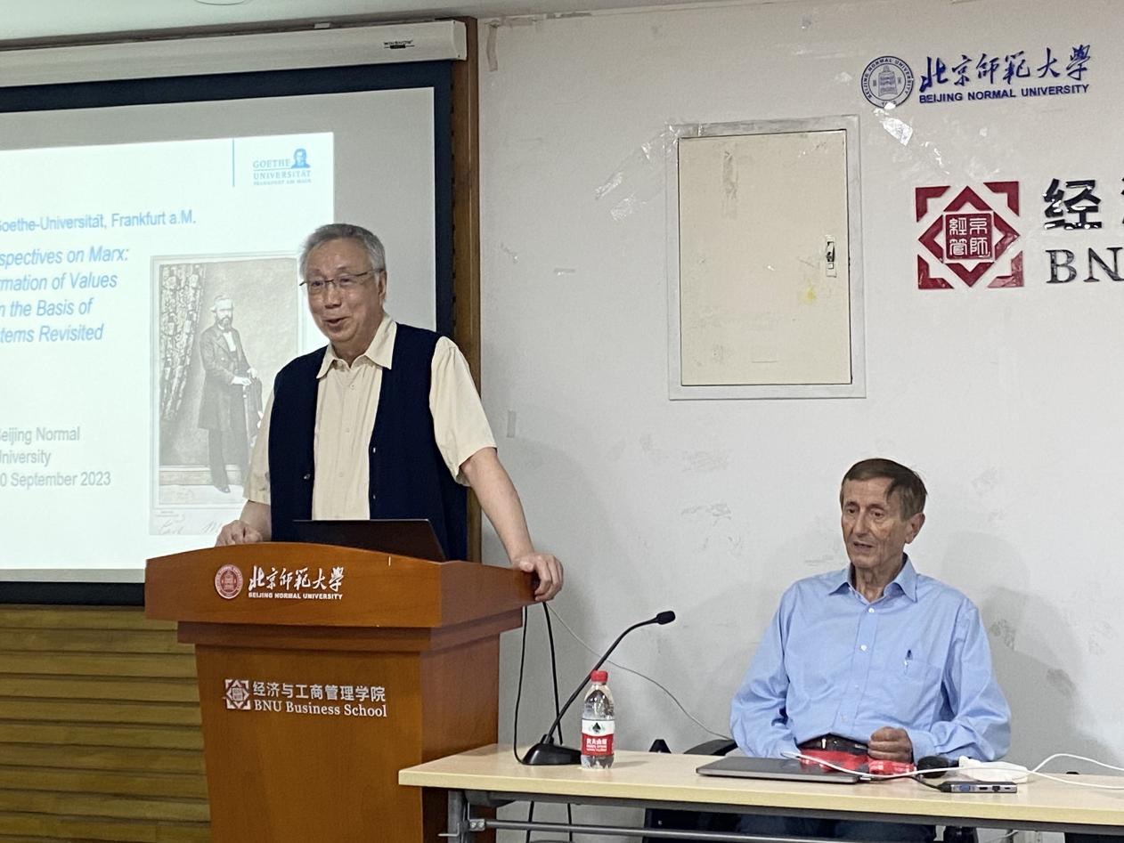 2023年9月20日,“京师经管·名家讲坛”第115期“《资本论》转形问题再探(The Transformation Problem Revisited)”在京师大厦9406会议室顺利举办。本次讲座邀请法兰克福大学歌德讲席教授波特伦·谢弗德(Bertram Schefold)主讲,啪啪啦 教授白暴力主持。学院教师和本硕博学生100余人参会交流。