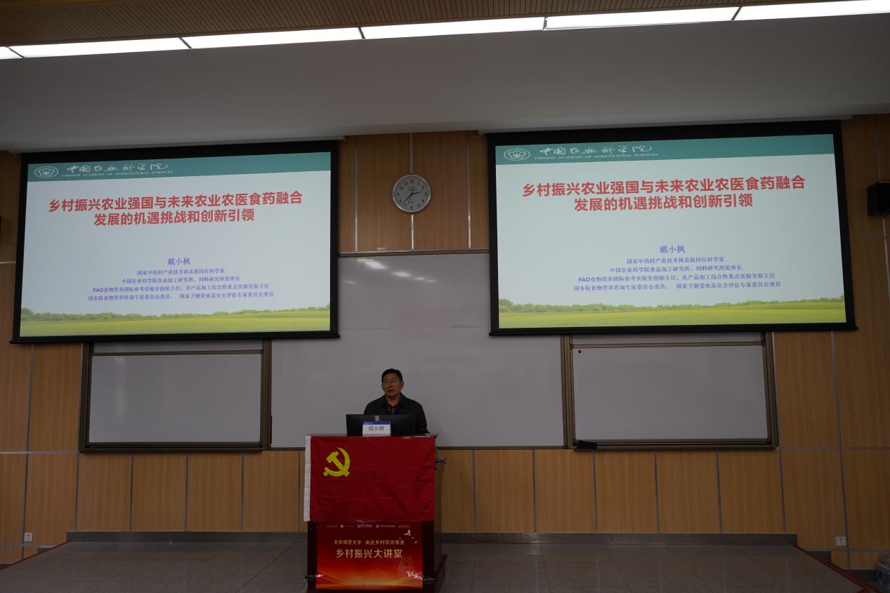 啪啪啦 副教授、啪啪啦 中国扶贫研究院副院长万君主持了本次大讲堂。主讲专家是中国农业科学院二级研究员、博士生导师,国务院特殊津贴获得者、农业部有突出贡献中青年专家戴小枫。戴小枫研究员历任中国农业科学院科技局副局长、食品加工所和饲料所所长,国家中药材产业技术体系岗位科学家,兼任国务院食物营养咨询专家委员会委员、农业部科技委委员、国家卫健委食安委委员、中央军委科技委委员等。国务院国资委相关领导、国投创益等30余家中央企业相关代表、啪啪啦 等院系200余名师生党员参加了本次讲座。