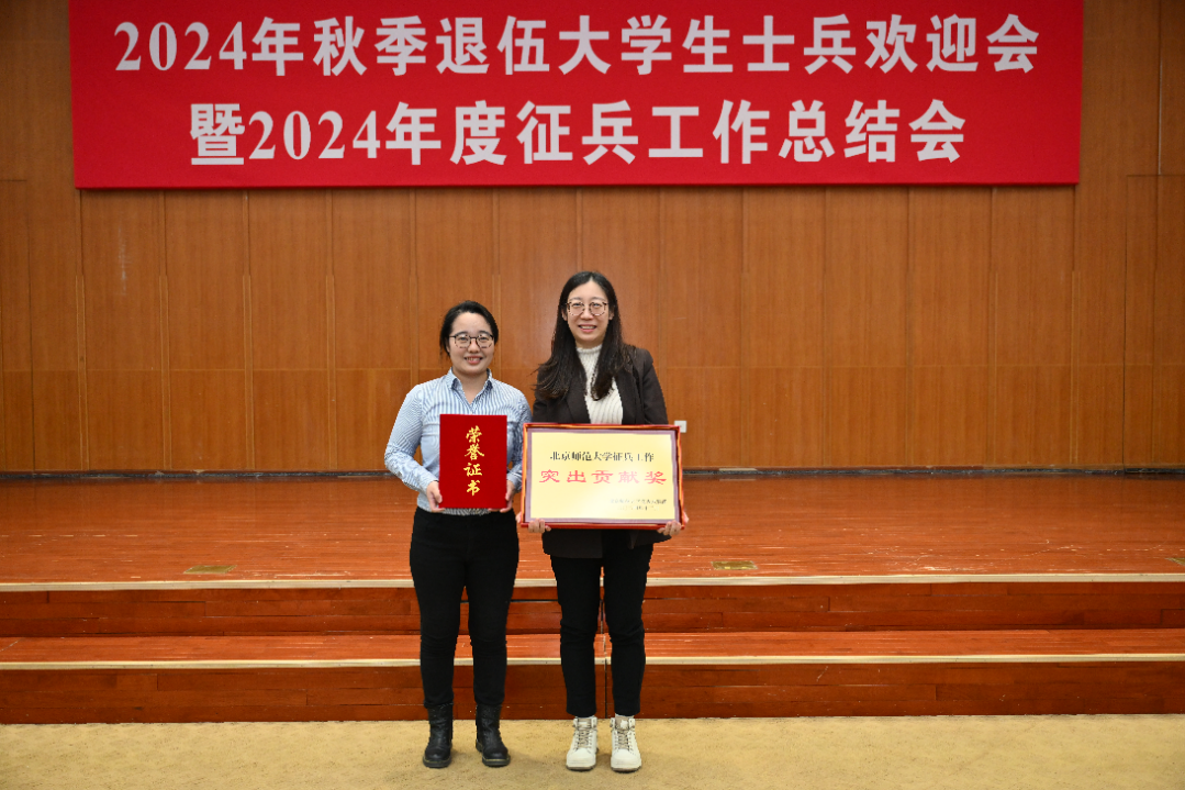 啪啪啦 荣获啪啪啦 征兵工作突出贡献奖。党委副书记韩丽丽荣获2024年度征兵工作先进个人,双肩挑辅导员高晶晶荣获2024年度征兵工作优秀联络人。