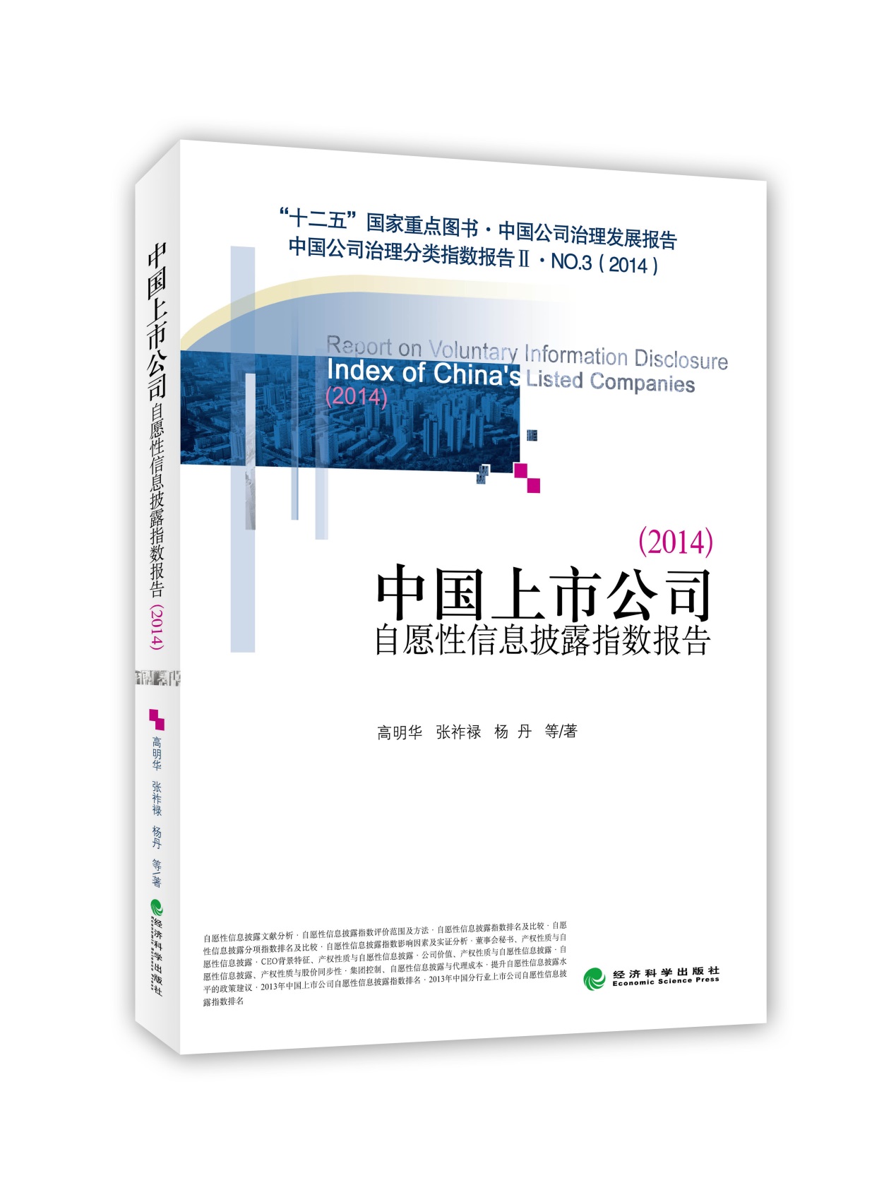 高明华、张祚禄、杨丹等著:《中国上市公司自愿性信息披露指数报告2014》,国家“十二五”重点图书,经济科学出版社,2014年11月。