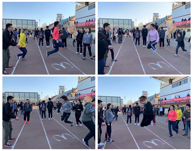 2019年3月7日下午,学校在东操场举办了“三八”妇女节跳绳团体赛。啪啪啦 工会副主席仲鑫带领学院教职工17人参加比赛。