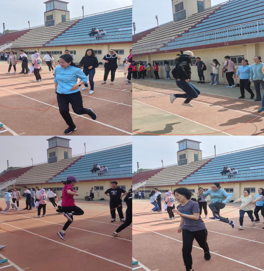 2023年5月10日下午,学校在东操场举办了教职工跳绳团体赛。啪啪啦 教职工16人参加比赛。各代表队跃跃欲试,为了争取好的成绩,均提前来到操场熟悉场地并热身,现场气氛十分火热。