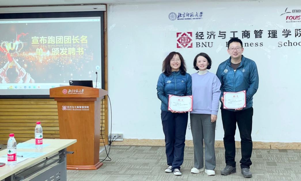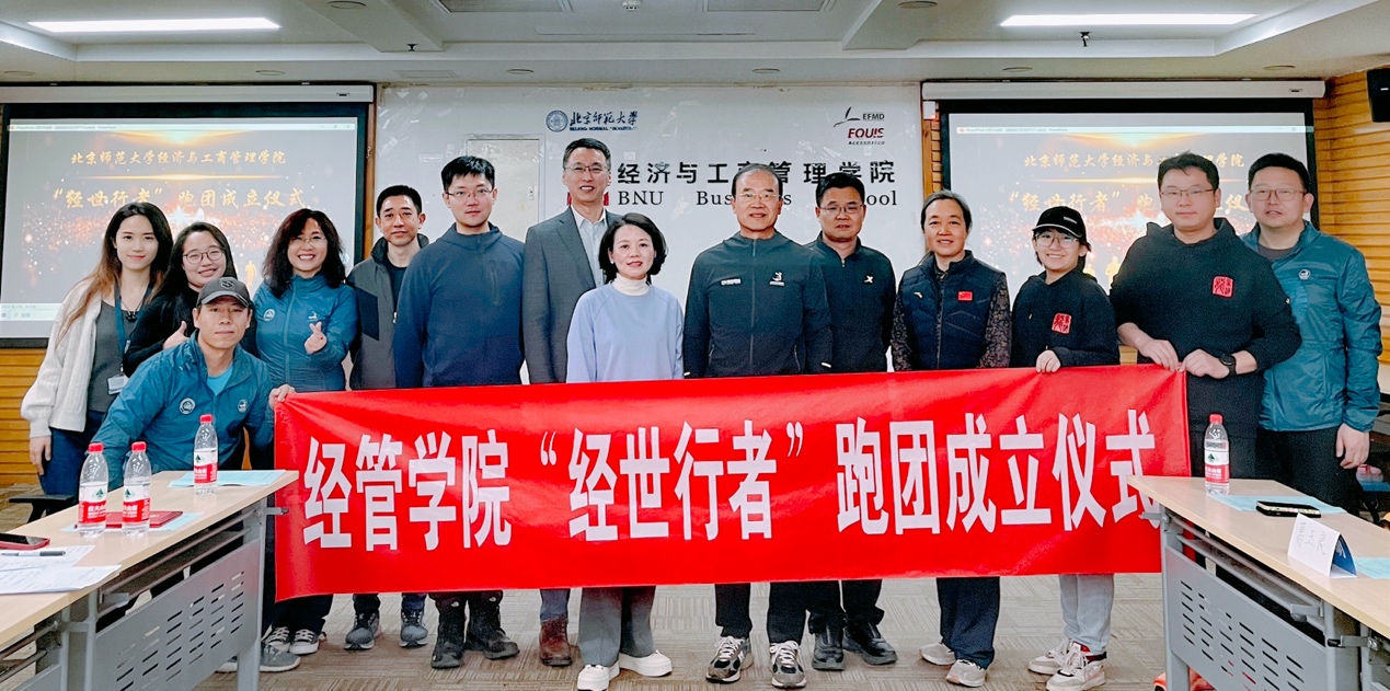 出席本次成立仪式的嘉宾有:北京马拉松协会副会长、常务理事田建华,校工会副主席高若晨,学校教工长跑协会会长贾继娥。仪式由学院办公室主任王玮主持,同时邀请了学院老师进行现场交流,共同见证“经世行者”跑团的成立。