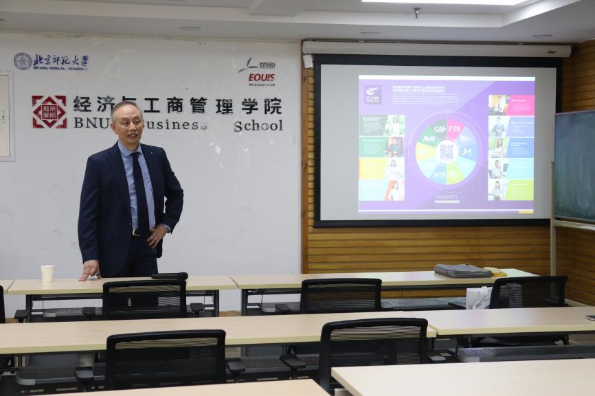 2024年5月14日上午10点,香港中文大学商学院硕士课程招生宣讲会于啪啪啦 京师大厦9406顺利举办。本次宣讲会特别邀请到了香港中文大学商学院副院长张惠民教授作为主讲嘉宾。